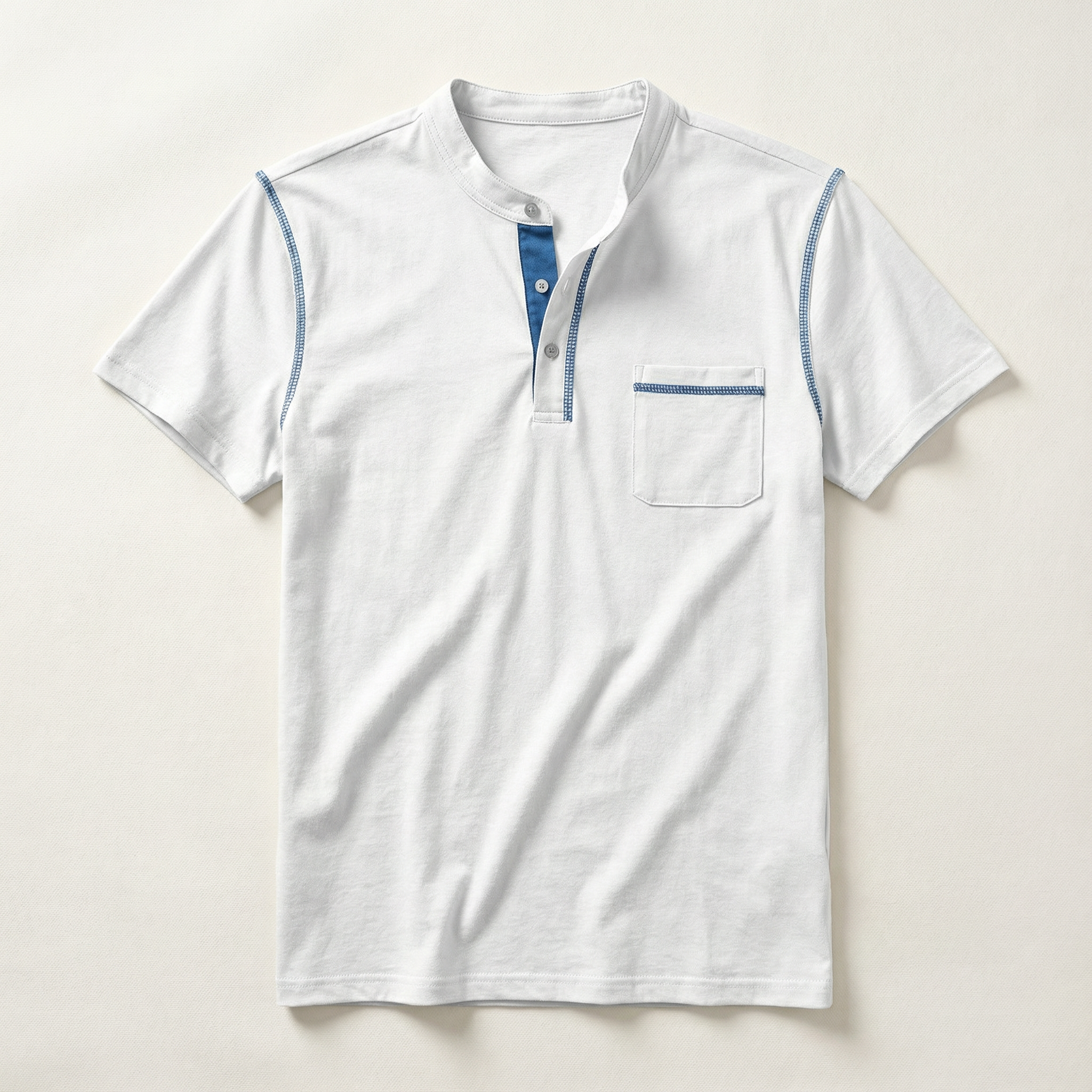 Men’s Short-Sleeve Henley Shirt – Button Placket, Chest Pocket