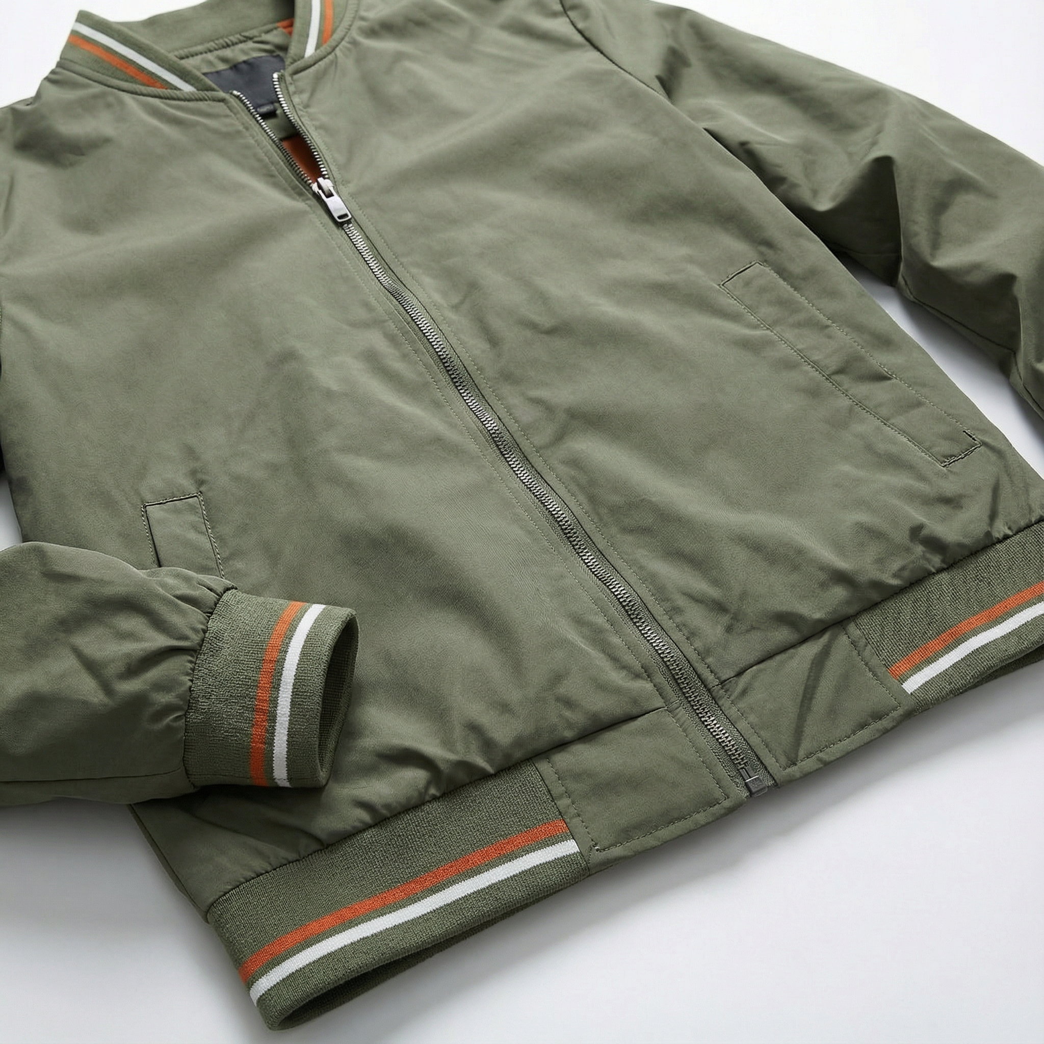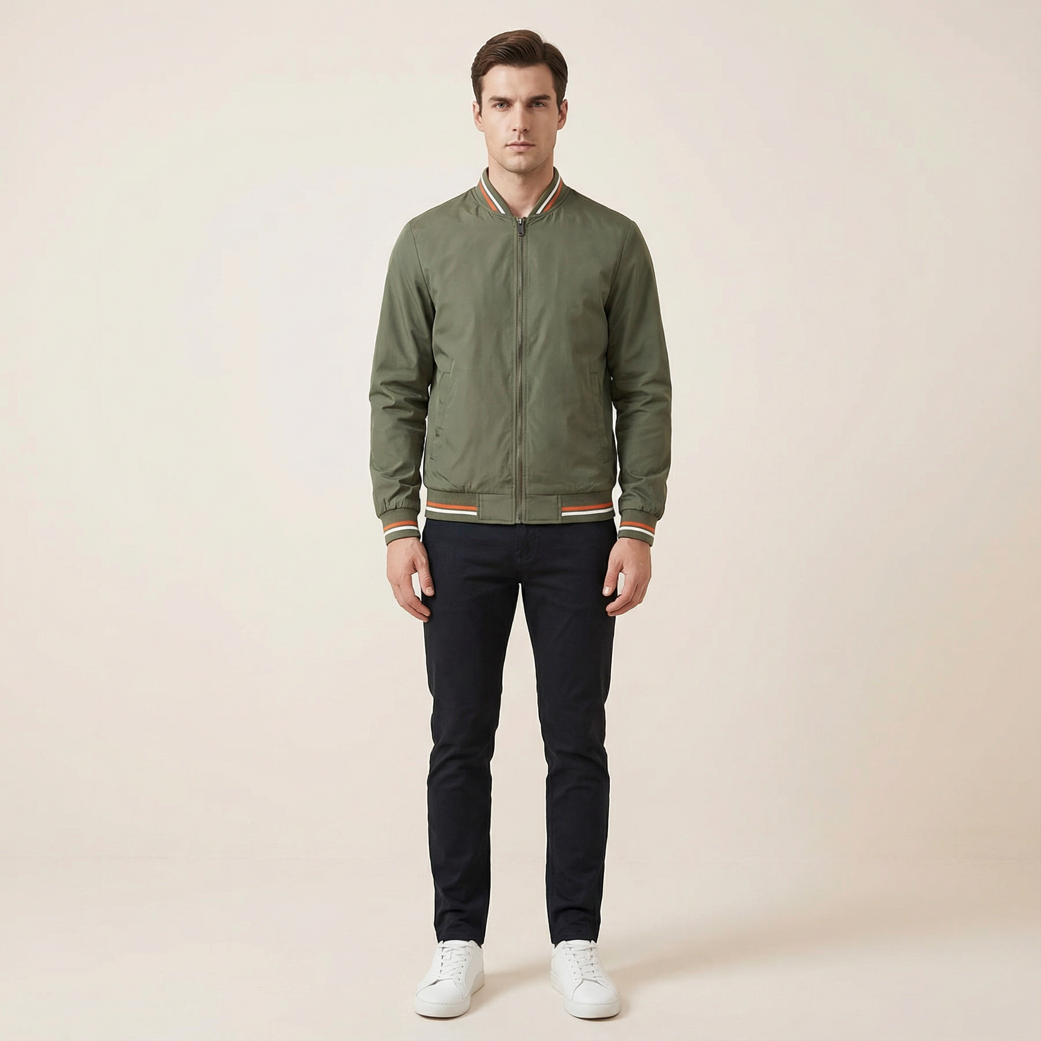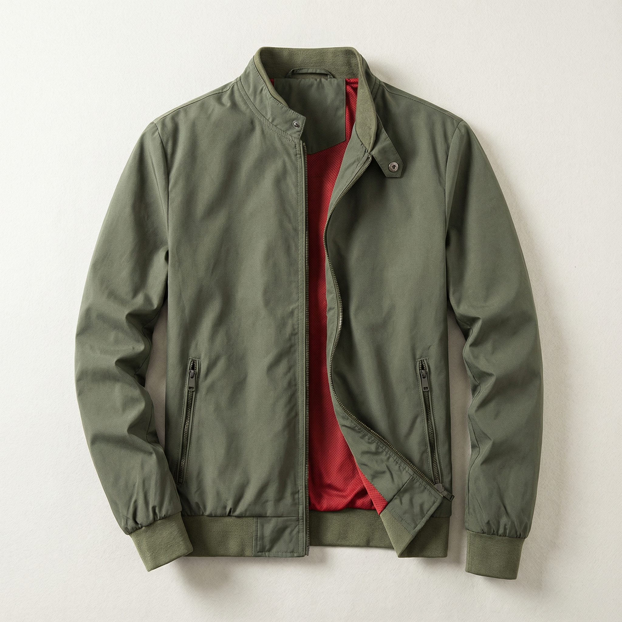 Men’s Bomber Jacket – Zip-Front Closure, Casual Collar and Cuffs