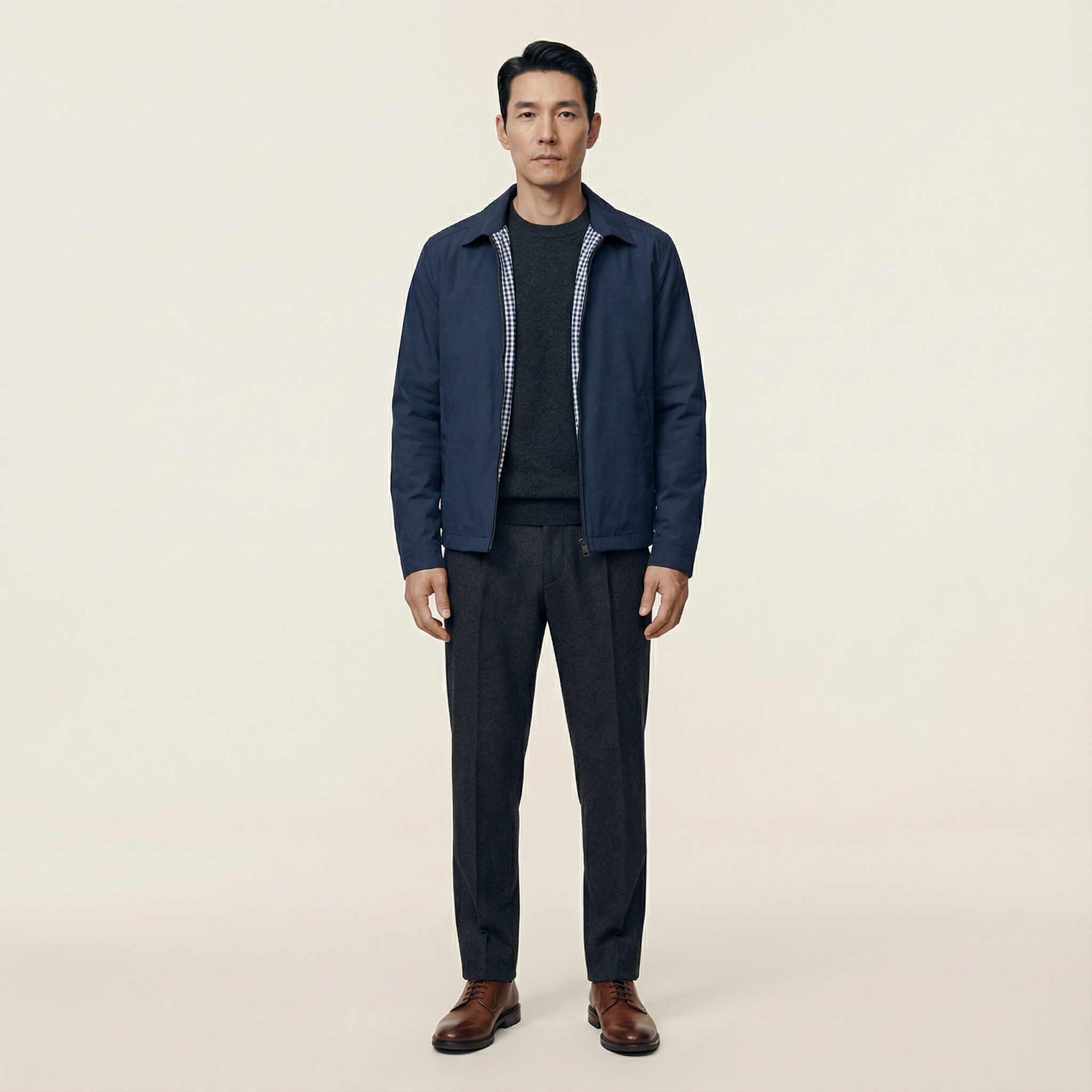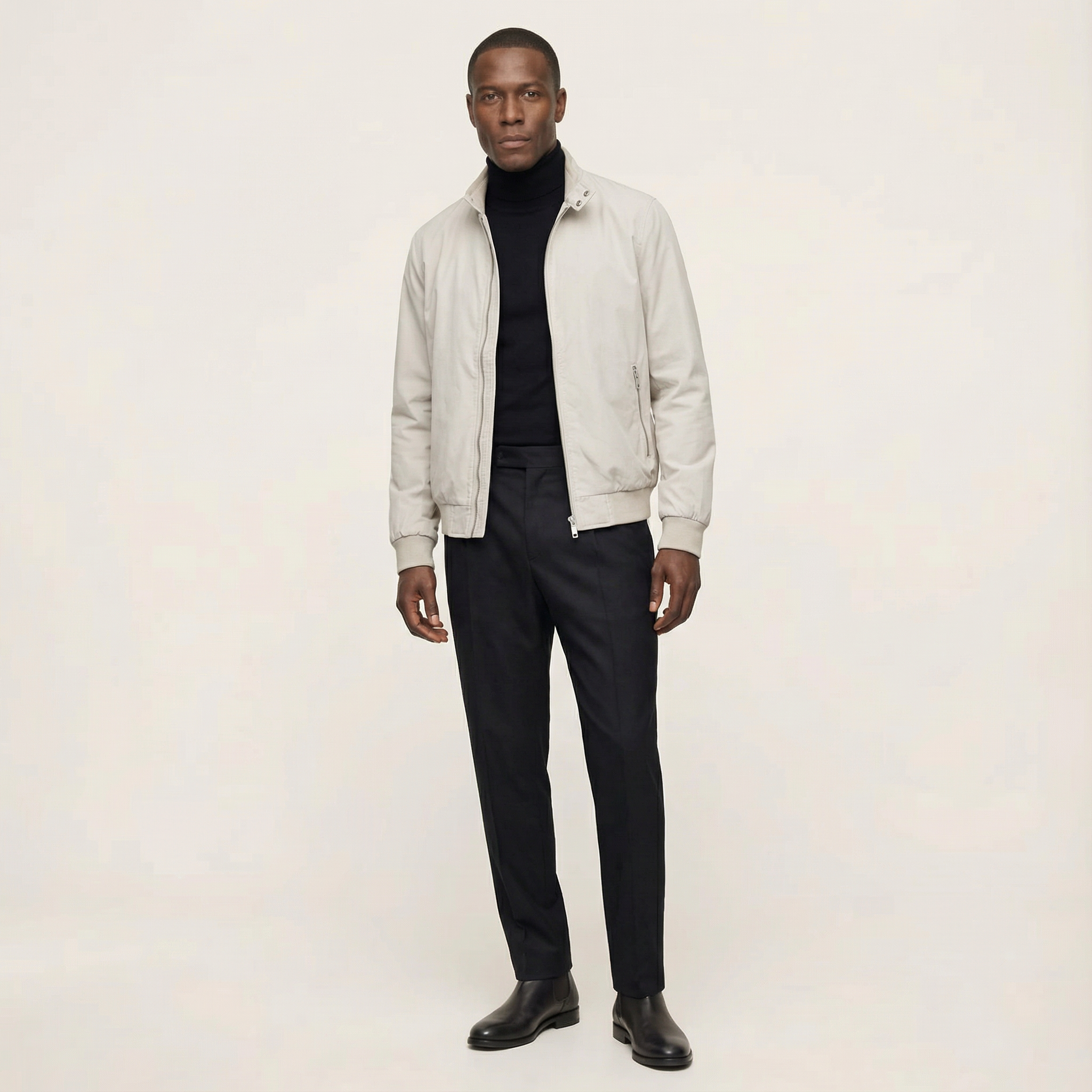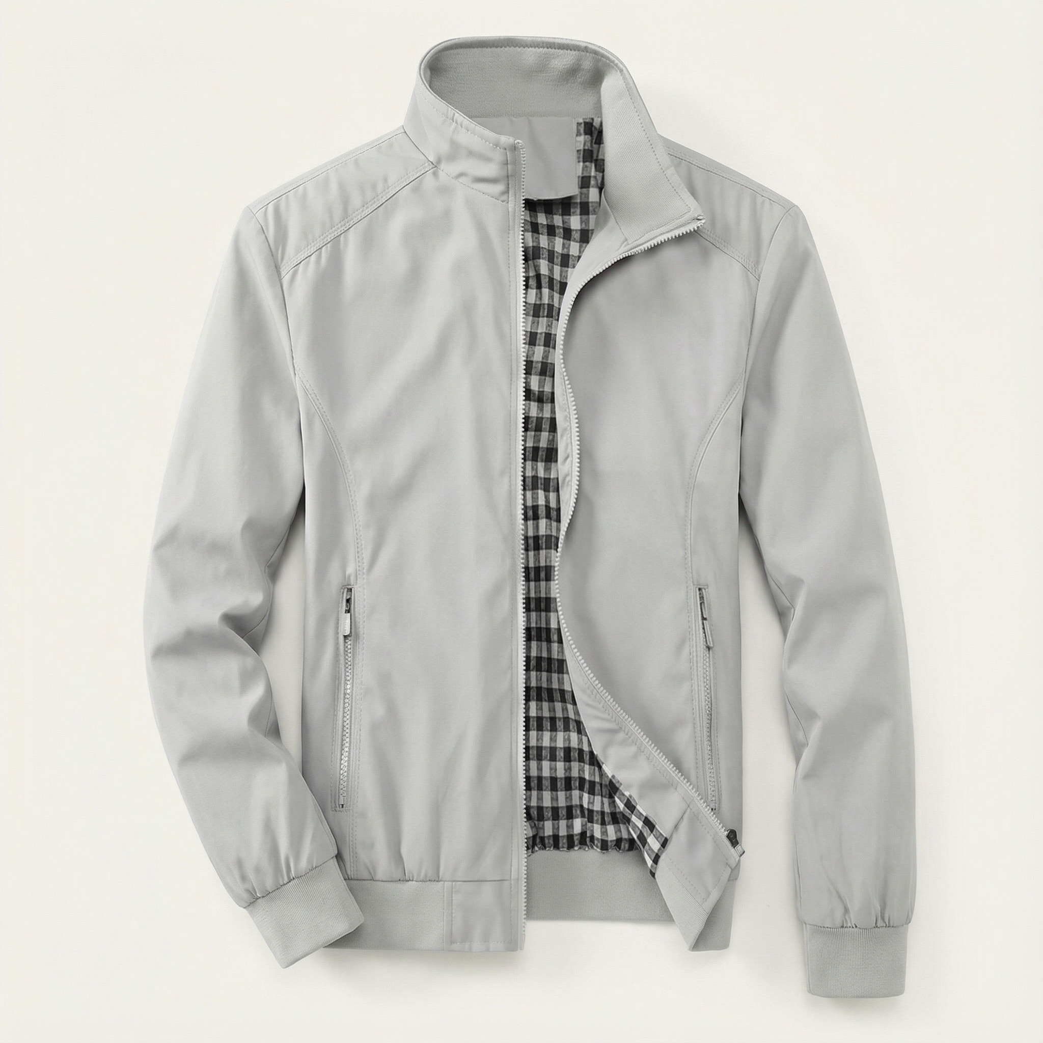 Men’s Zip-Up Jacket – Stand Collar, Long Sleeves, Clean Minimal Design