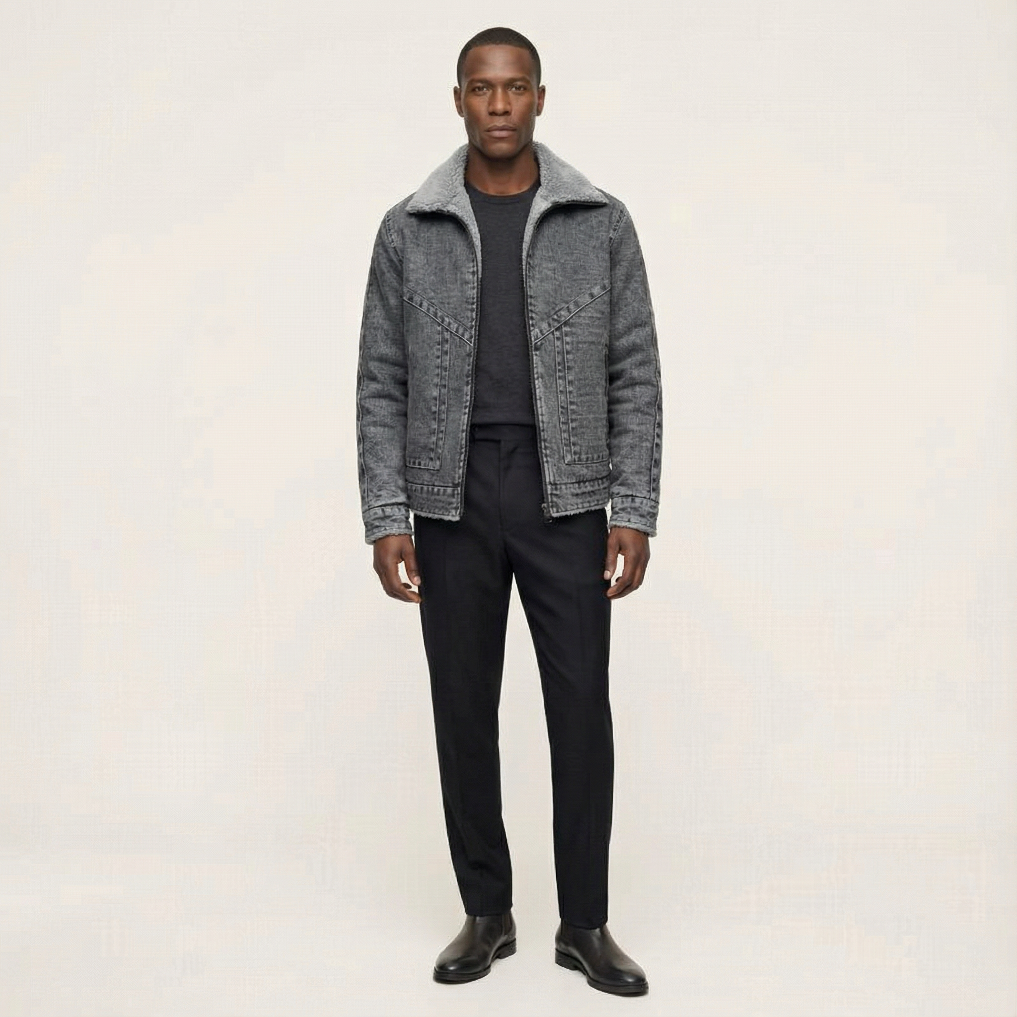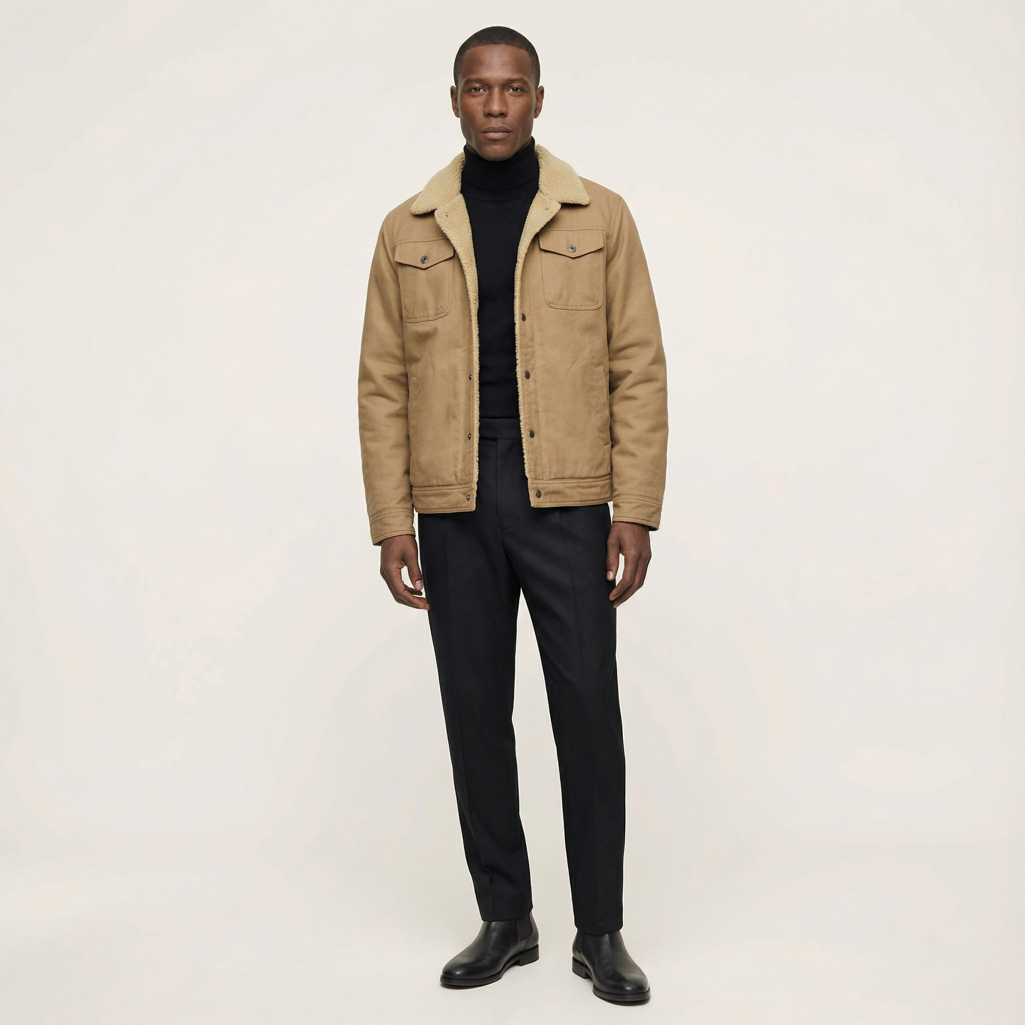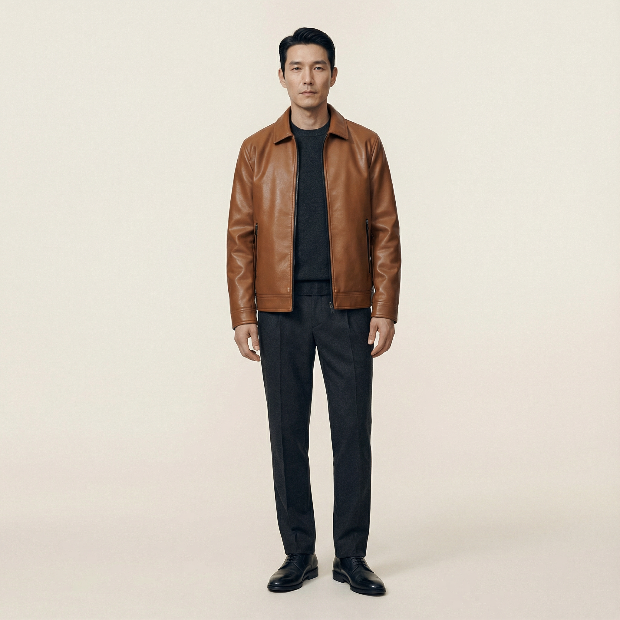 Men’s Zip-Up Jacket – Stand Collar, Long Sleeves, Clean Minimal Design