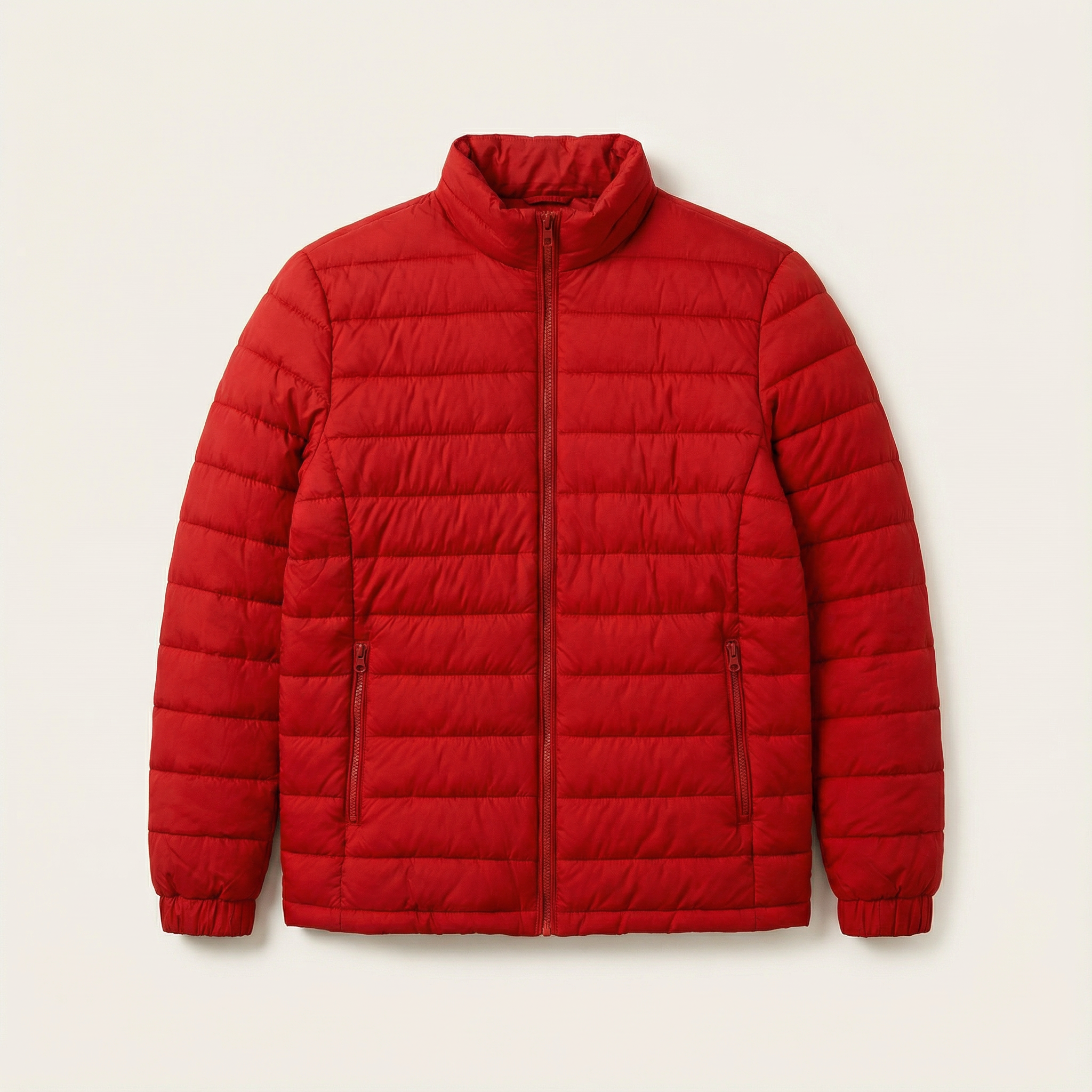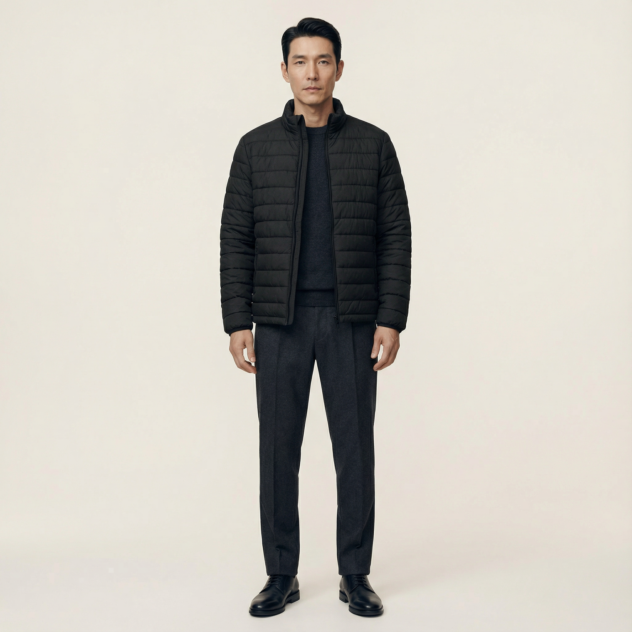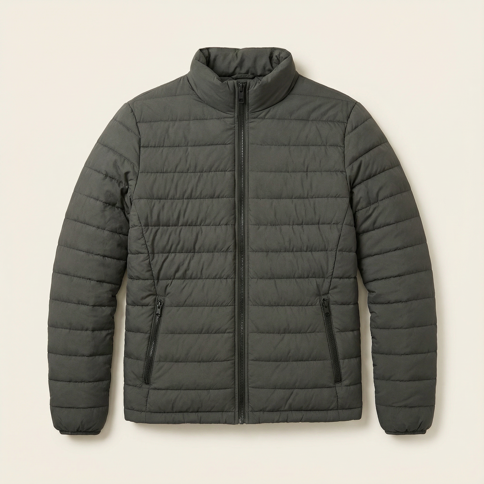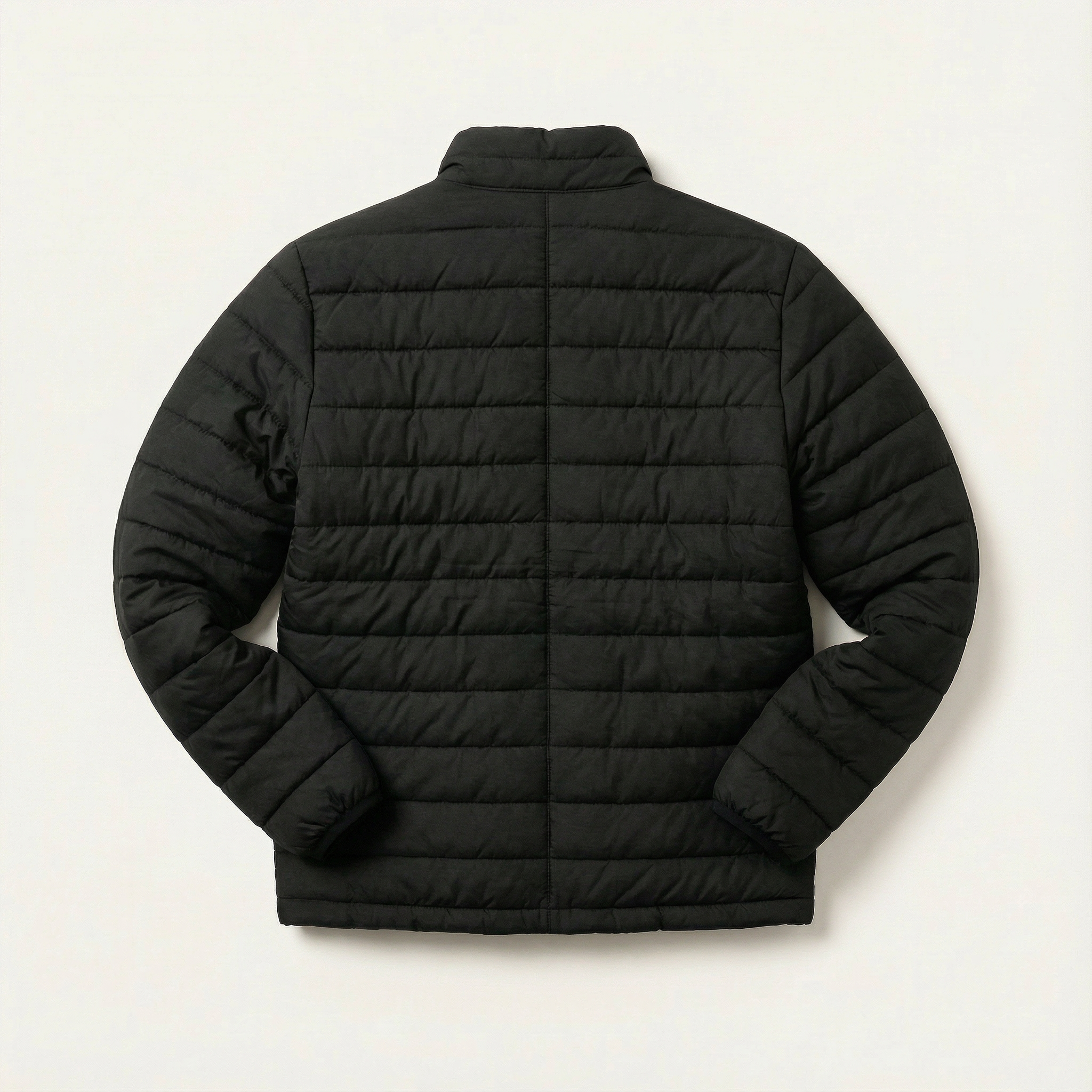 Men’s Puffer Jacket – Zip Front, Stand Collar, Long Sleeves