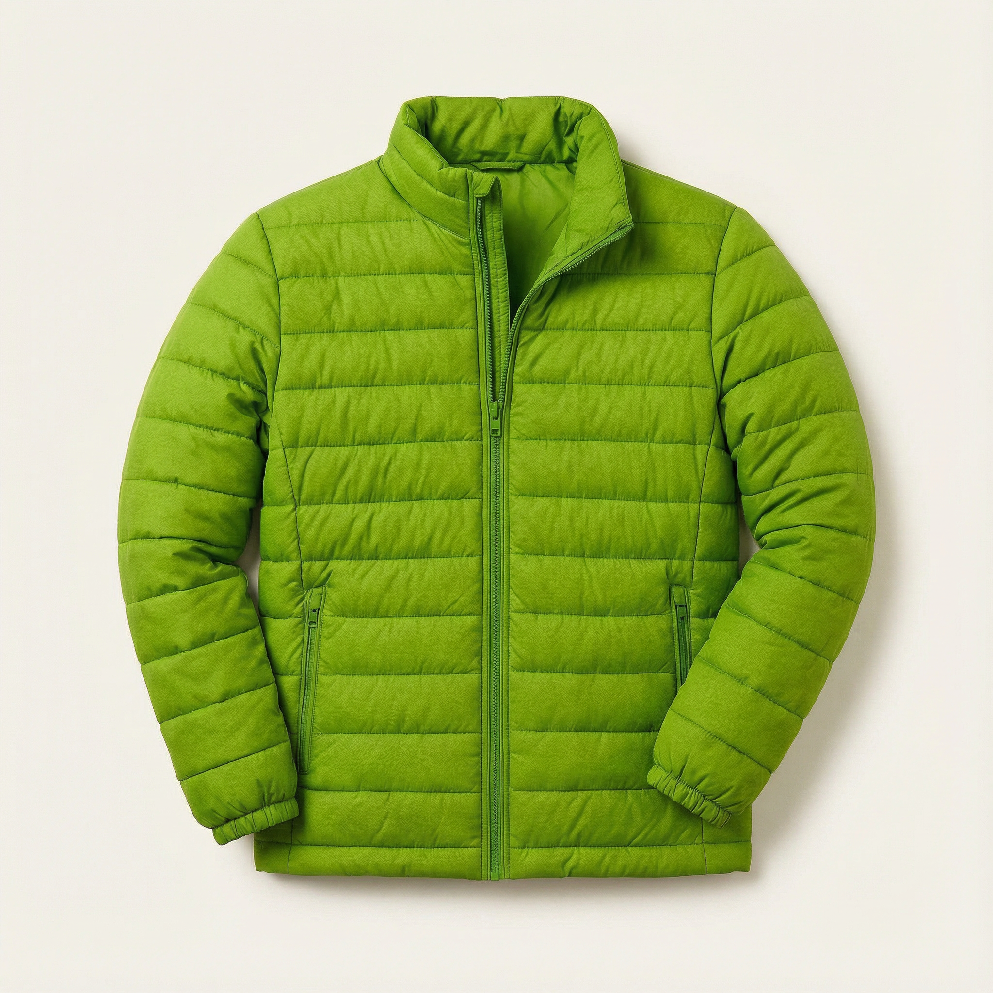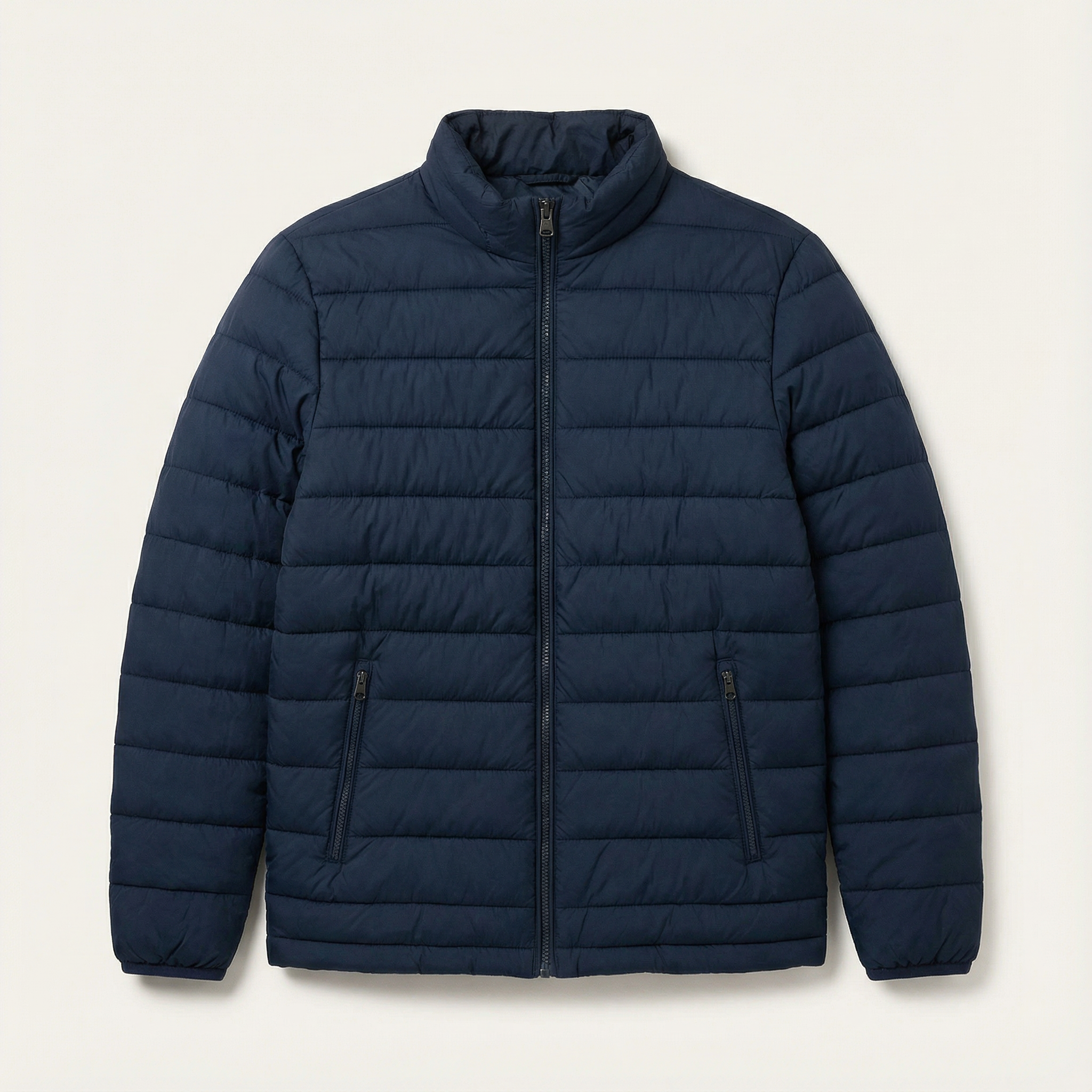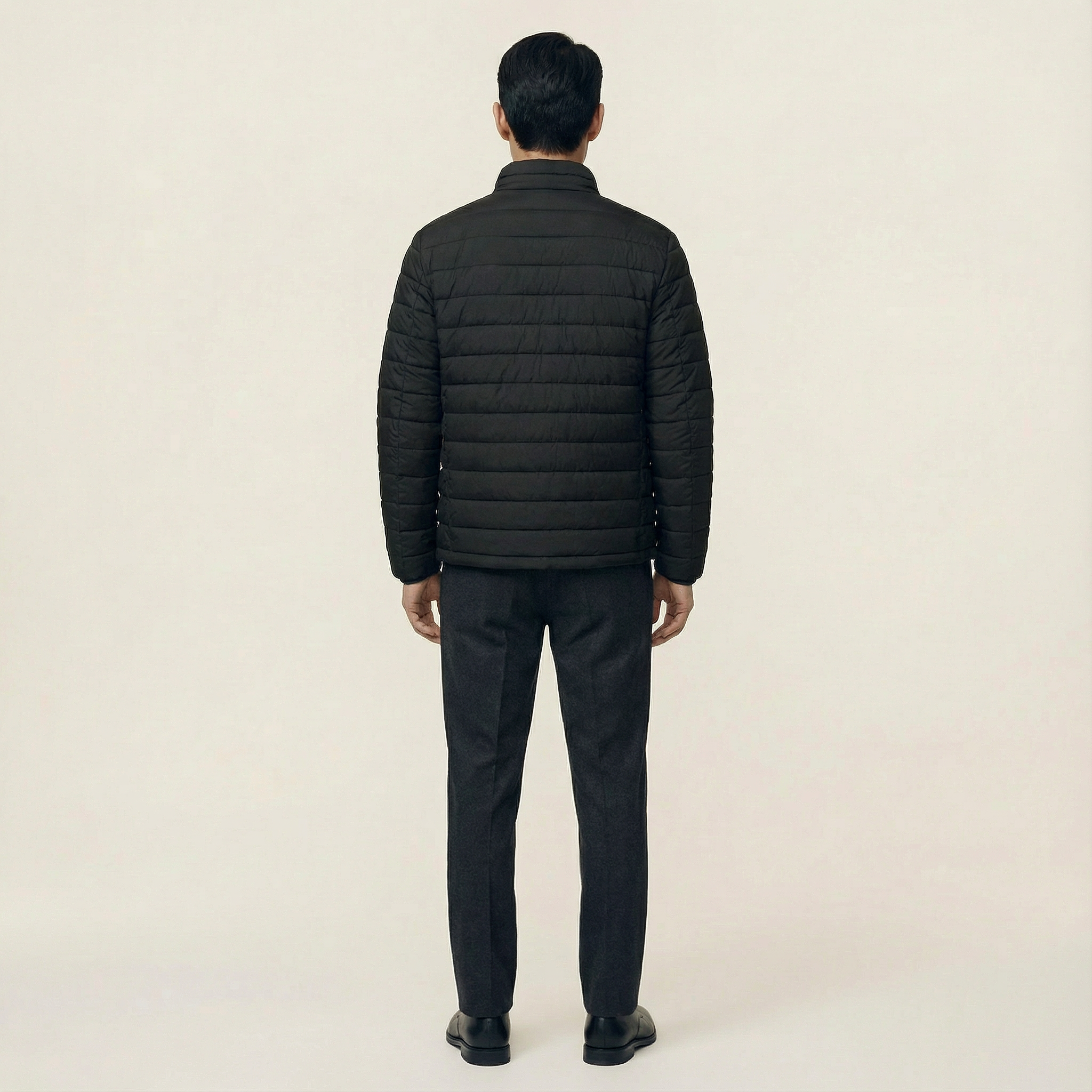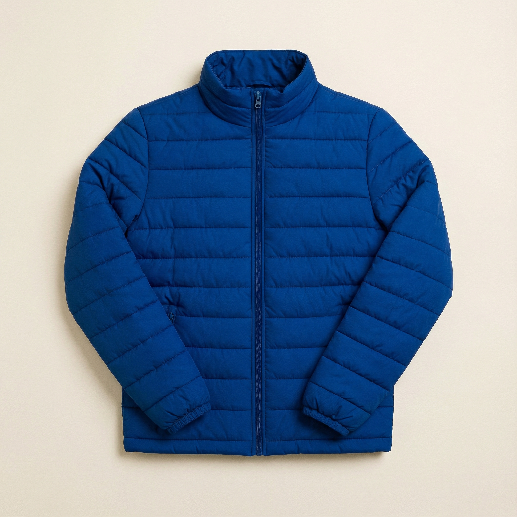 Men’s Puffer Jacket – Zip Front, Stand Collar, Long Sleeves