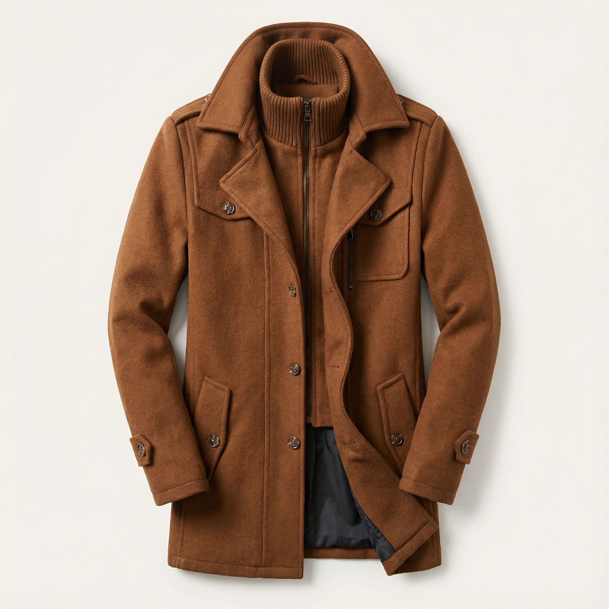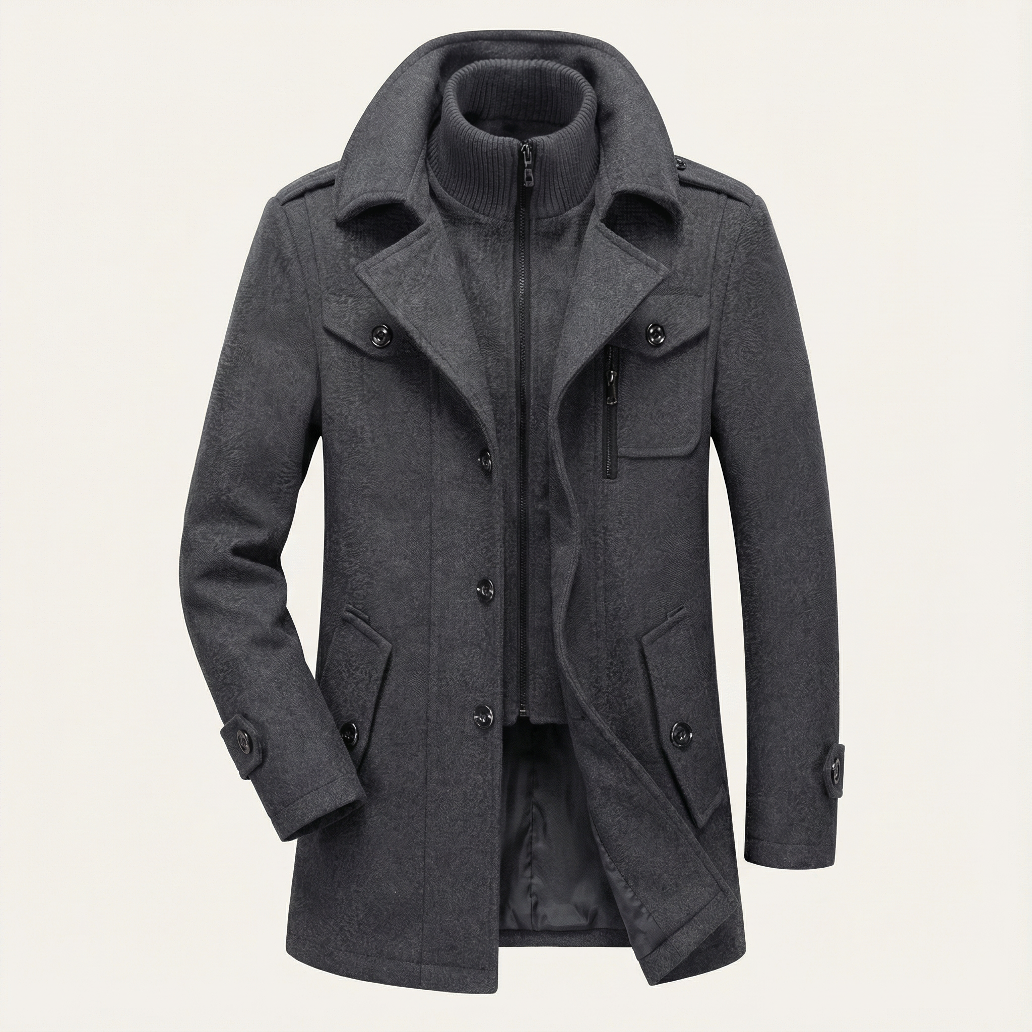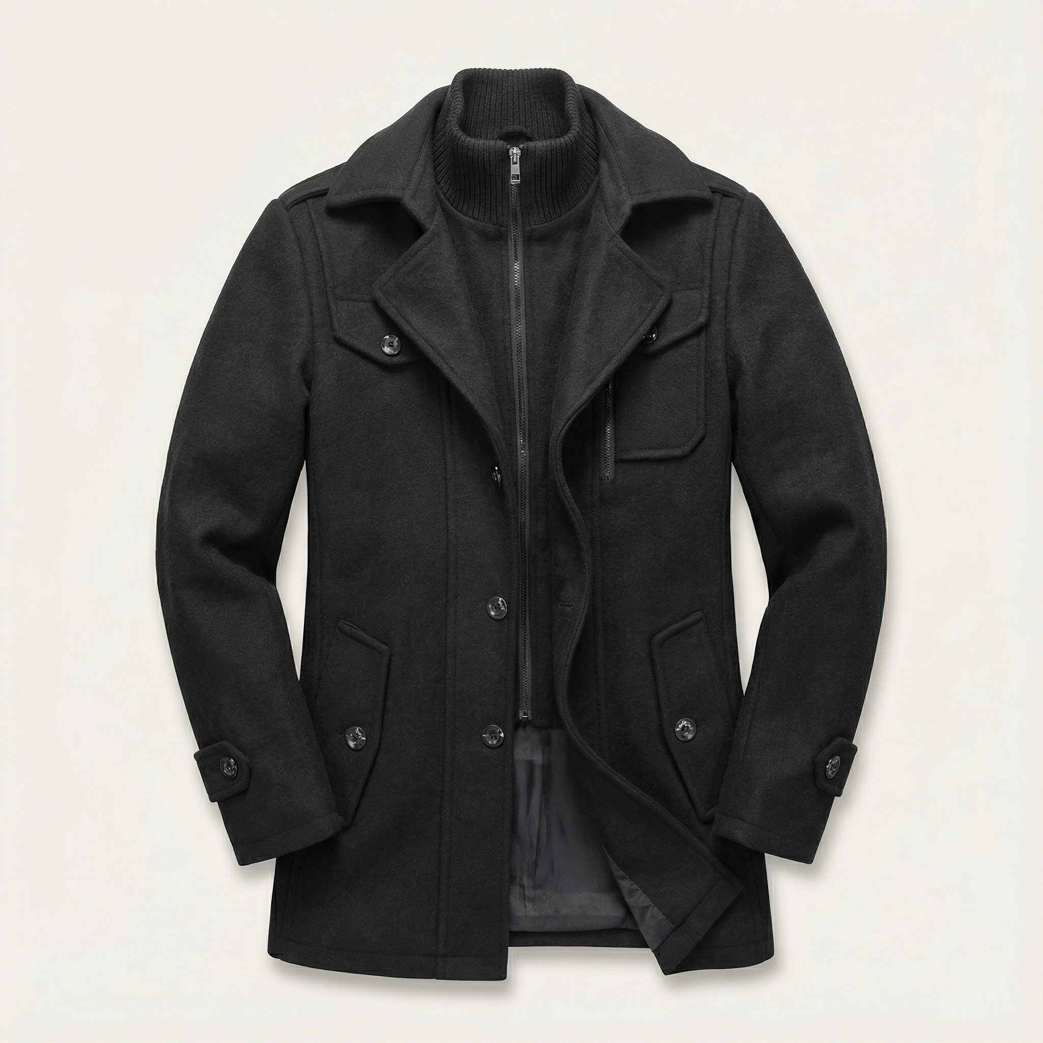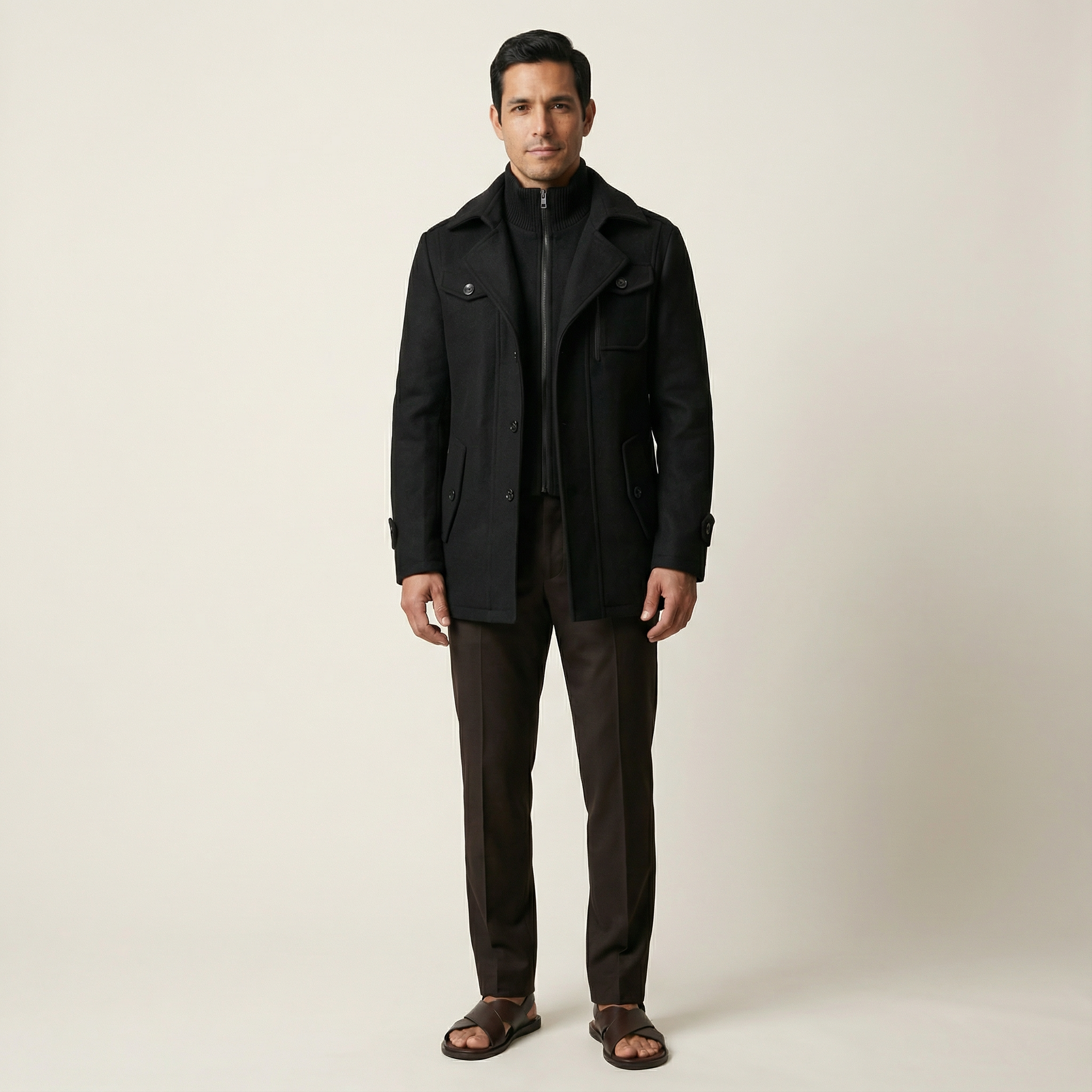 Men’s Button-Front Jacket – Collared Design, Long Sleeves