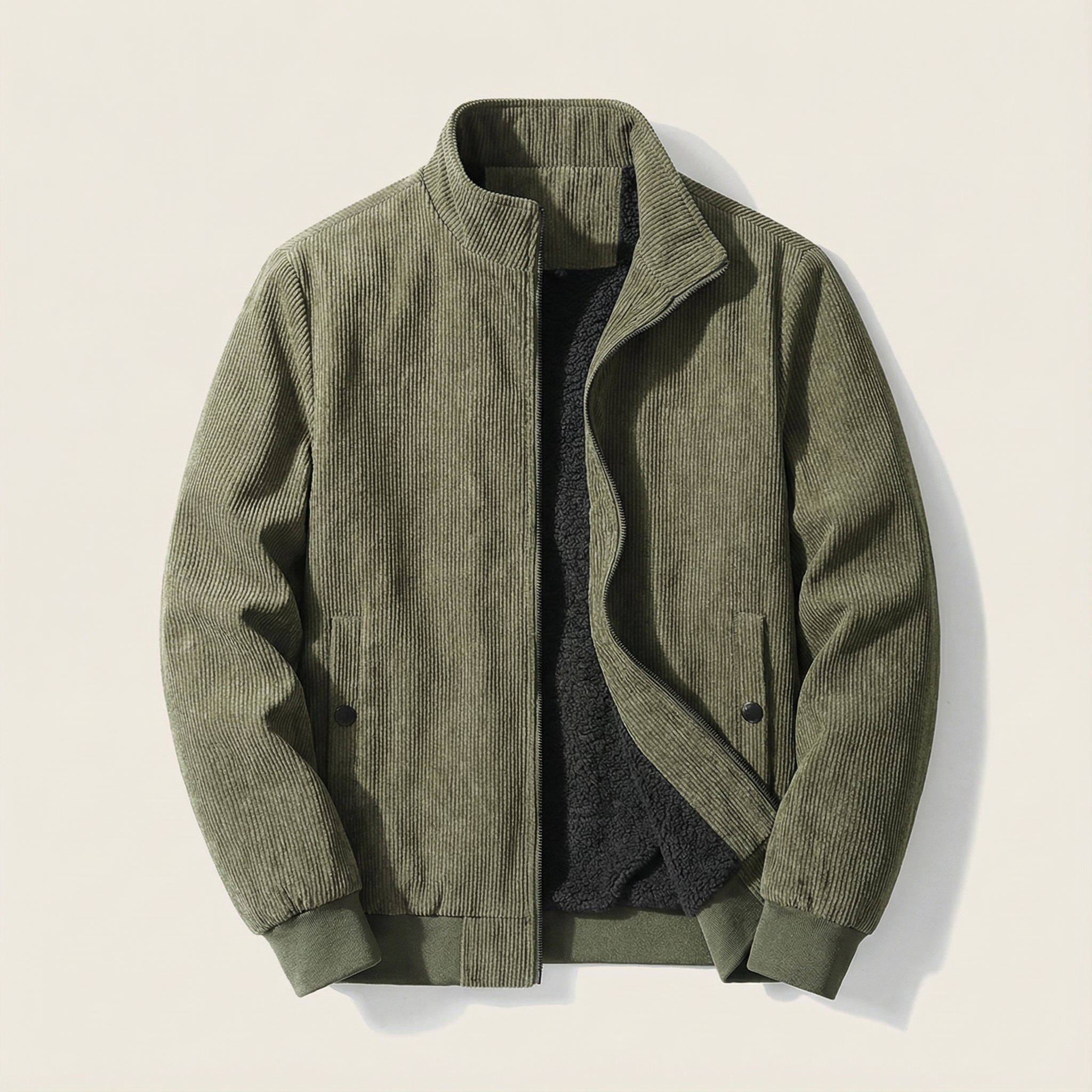 Men’s Zip-Up Jacket – Stand Collar, Long Sleeves