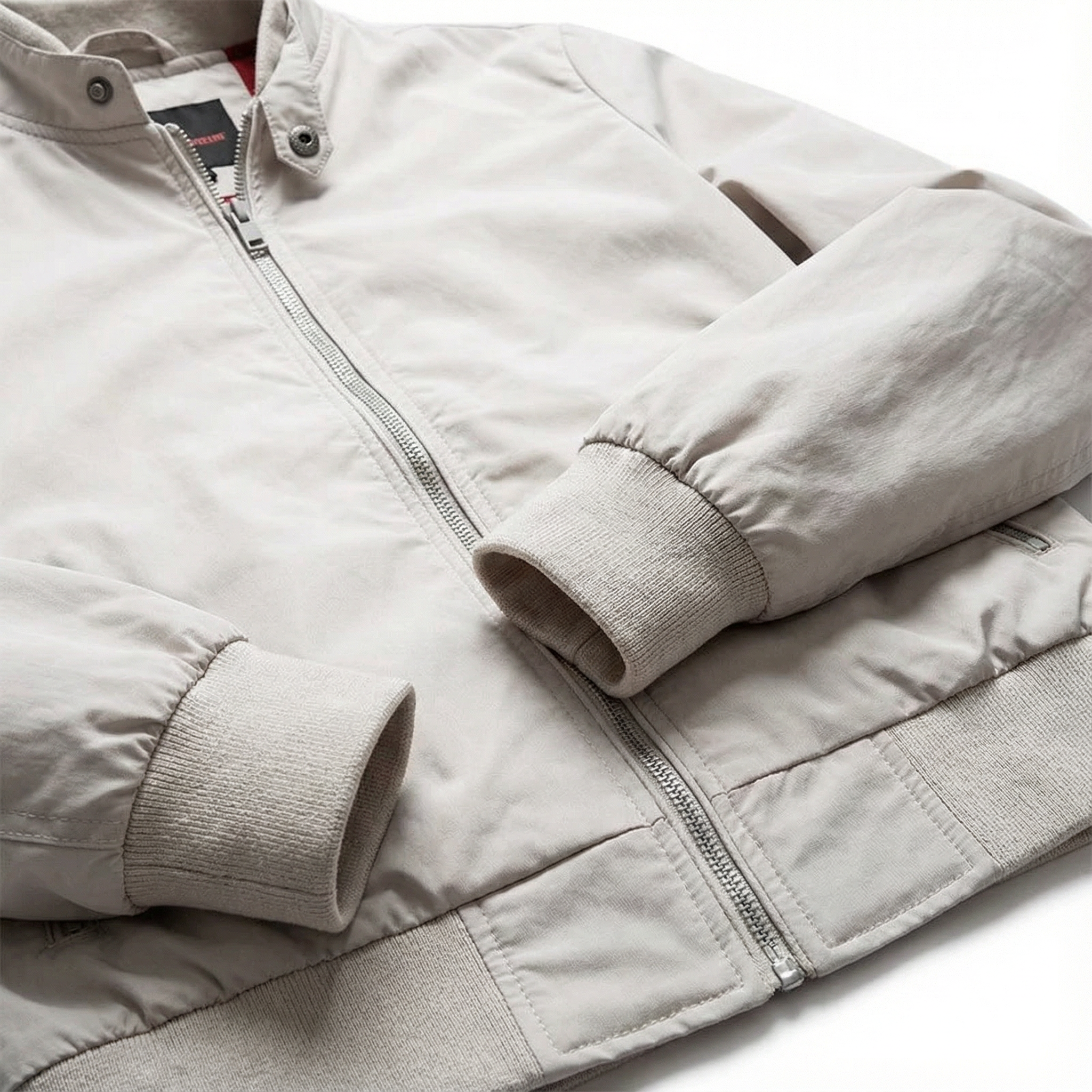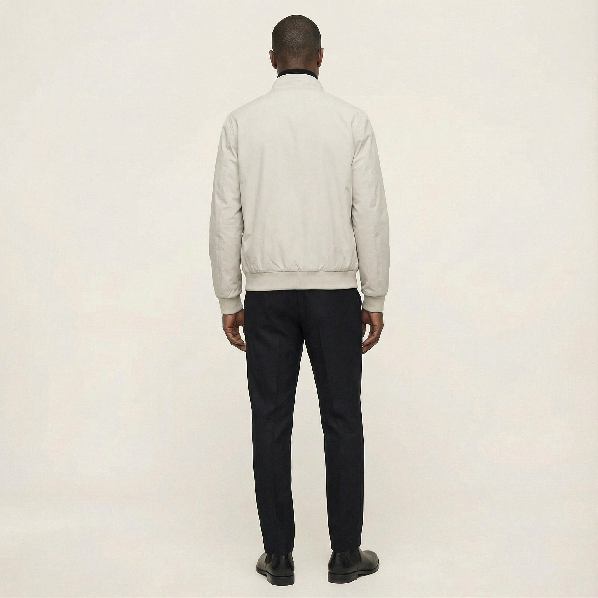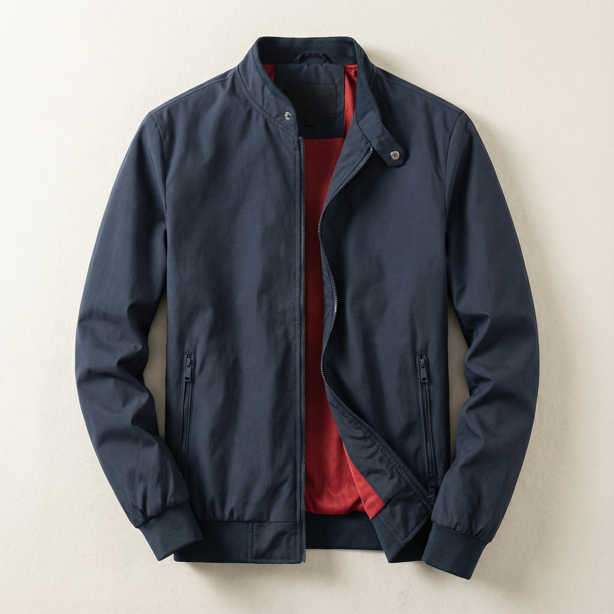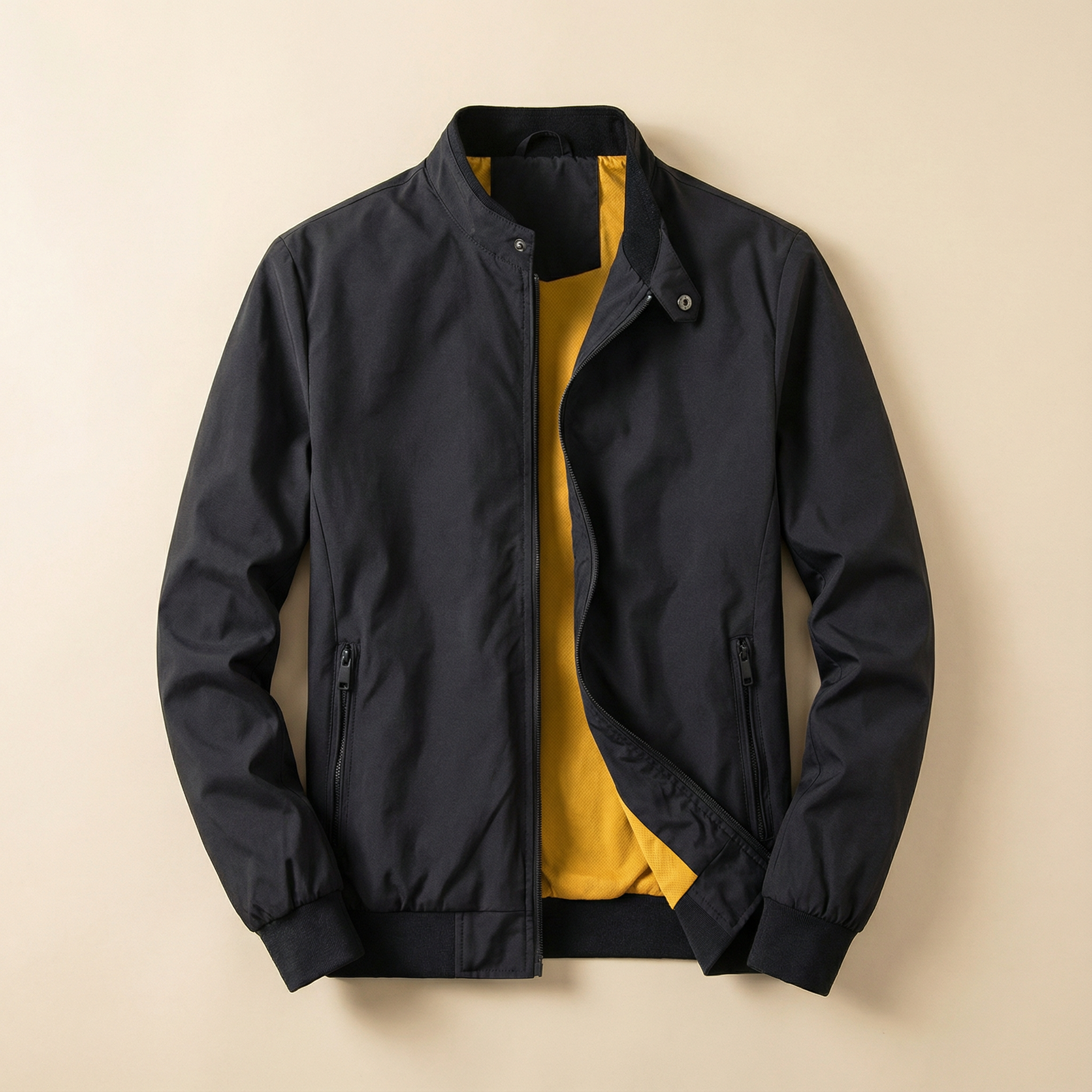 This men’s zip-front jacket is designed for everyday outerwear use. It features a clean exterior with a stand collar.