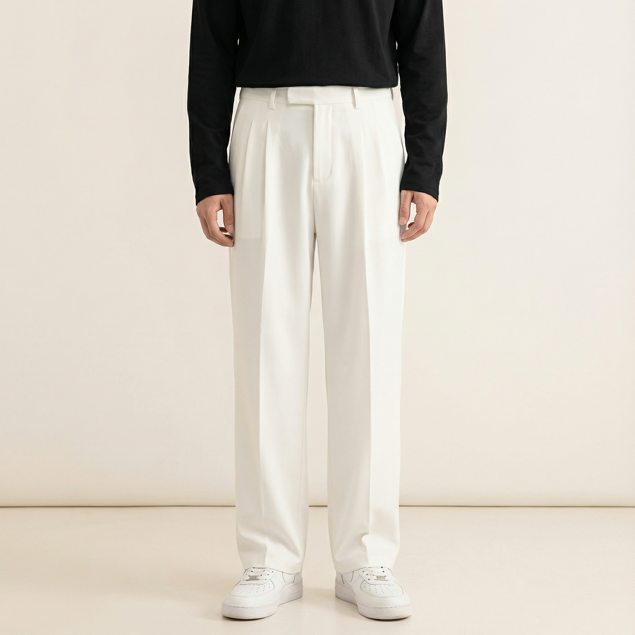 Men’s Trousers – High-Waist Design, Straight Leg, Full-Length Style