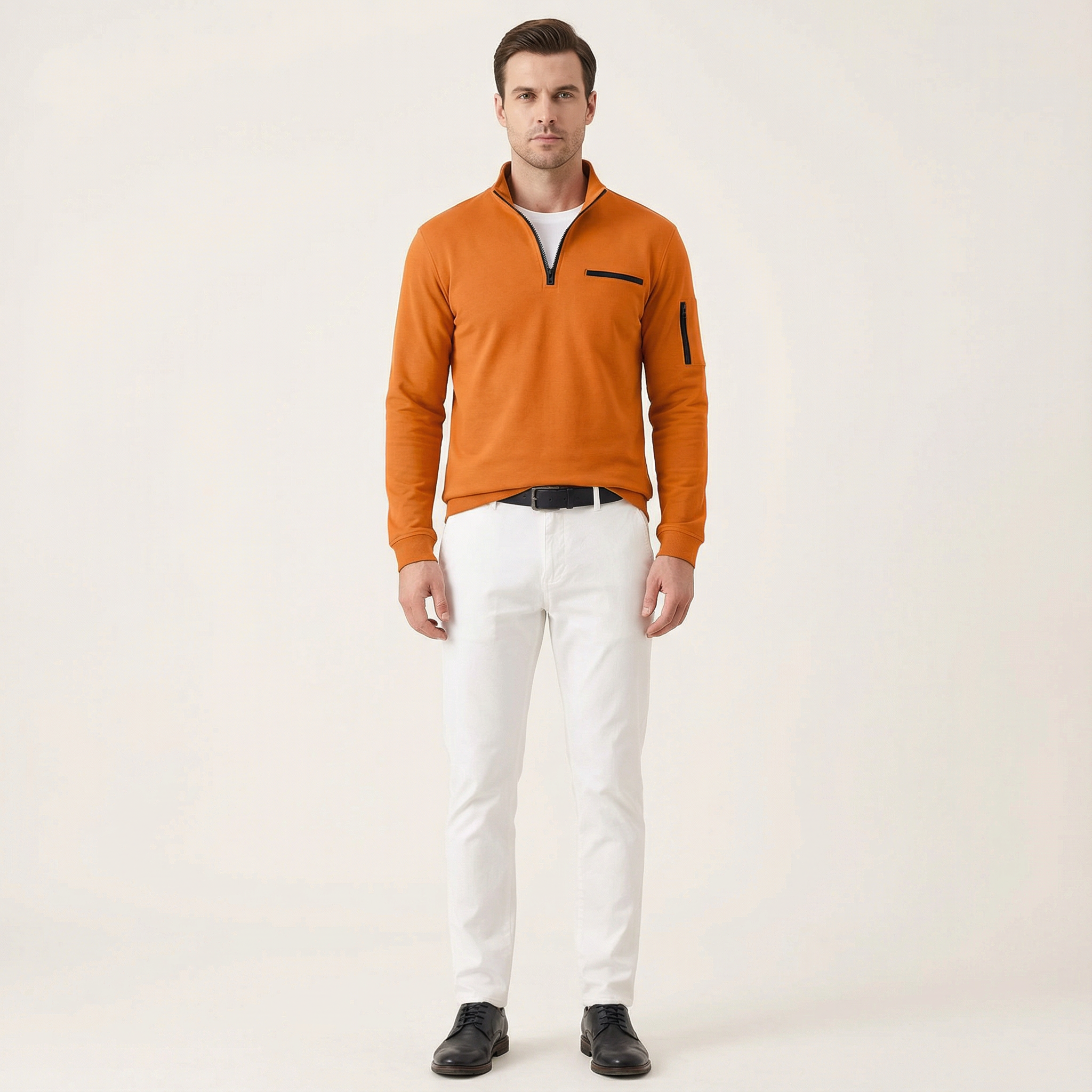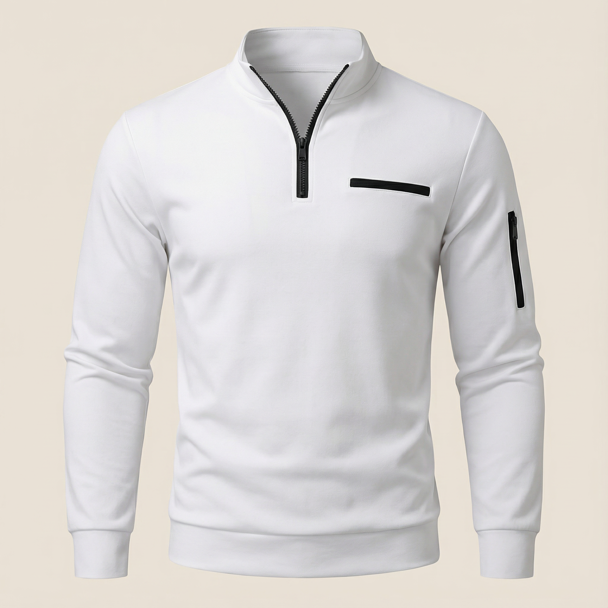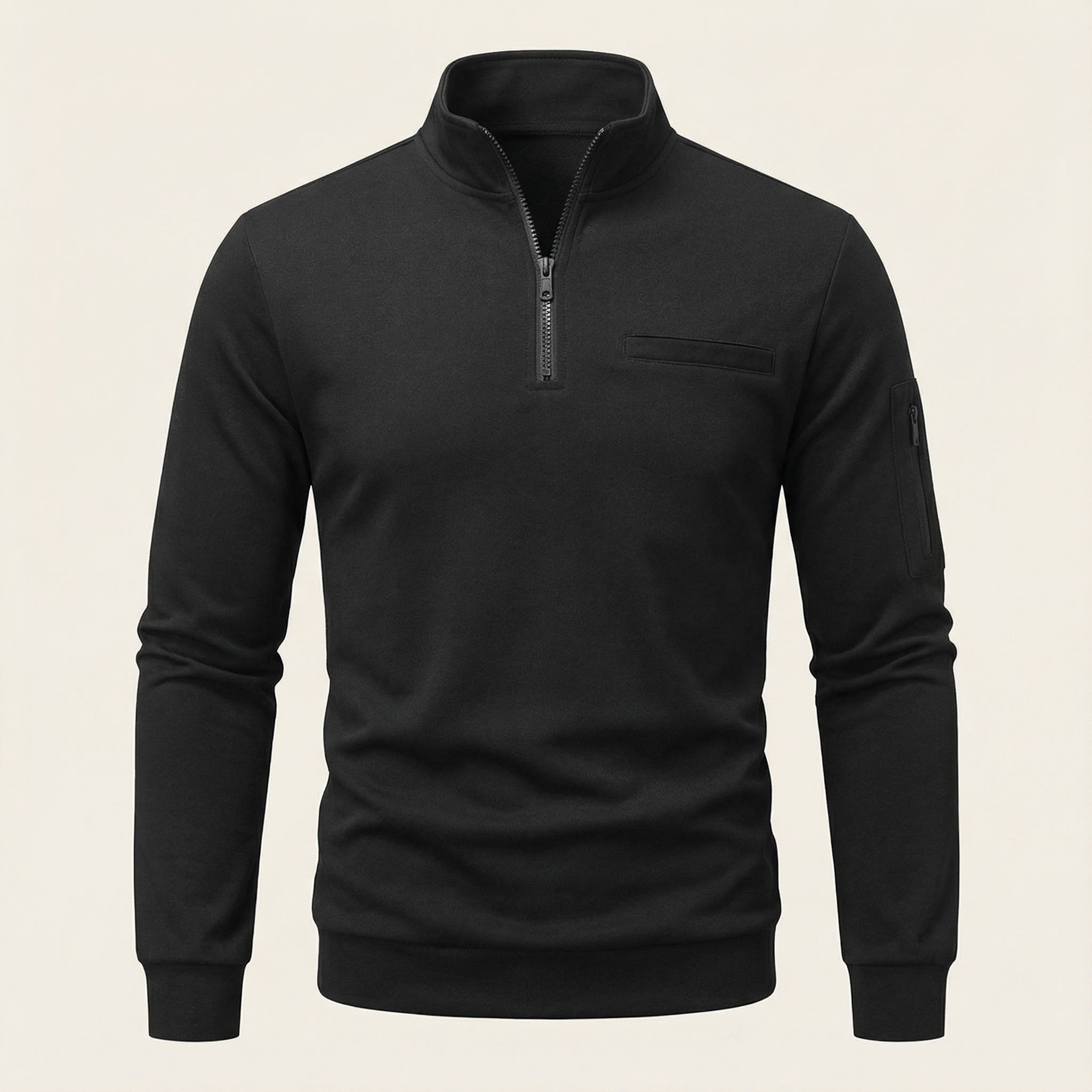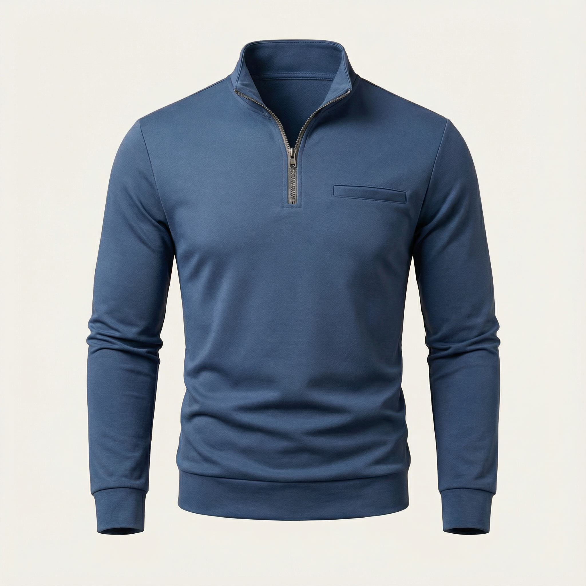 Men’s Long-Sleeve Knit Shirt – Placket, Stand Collar