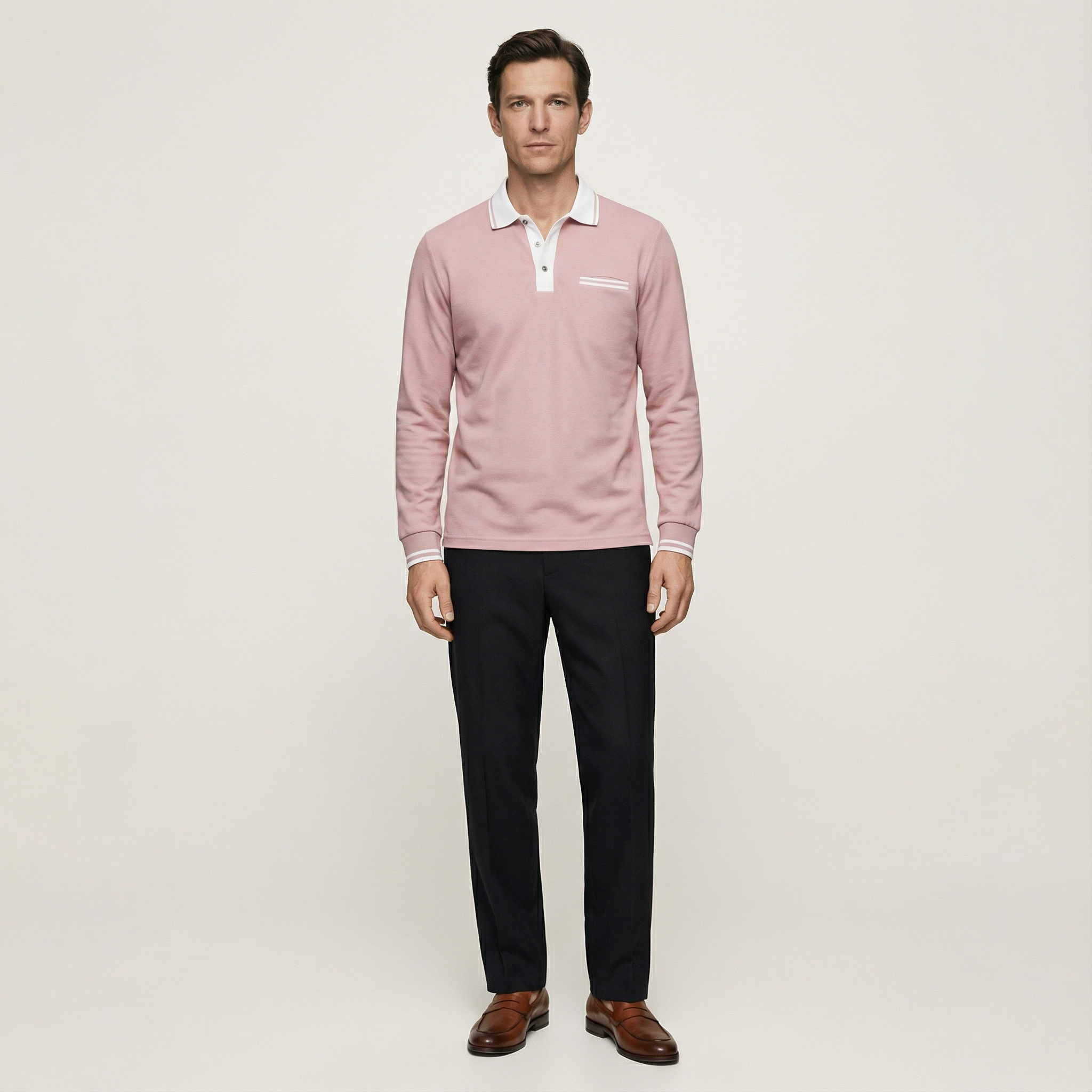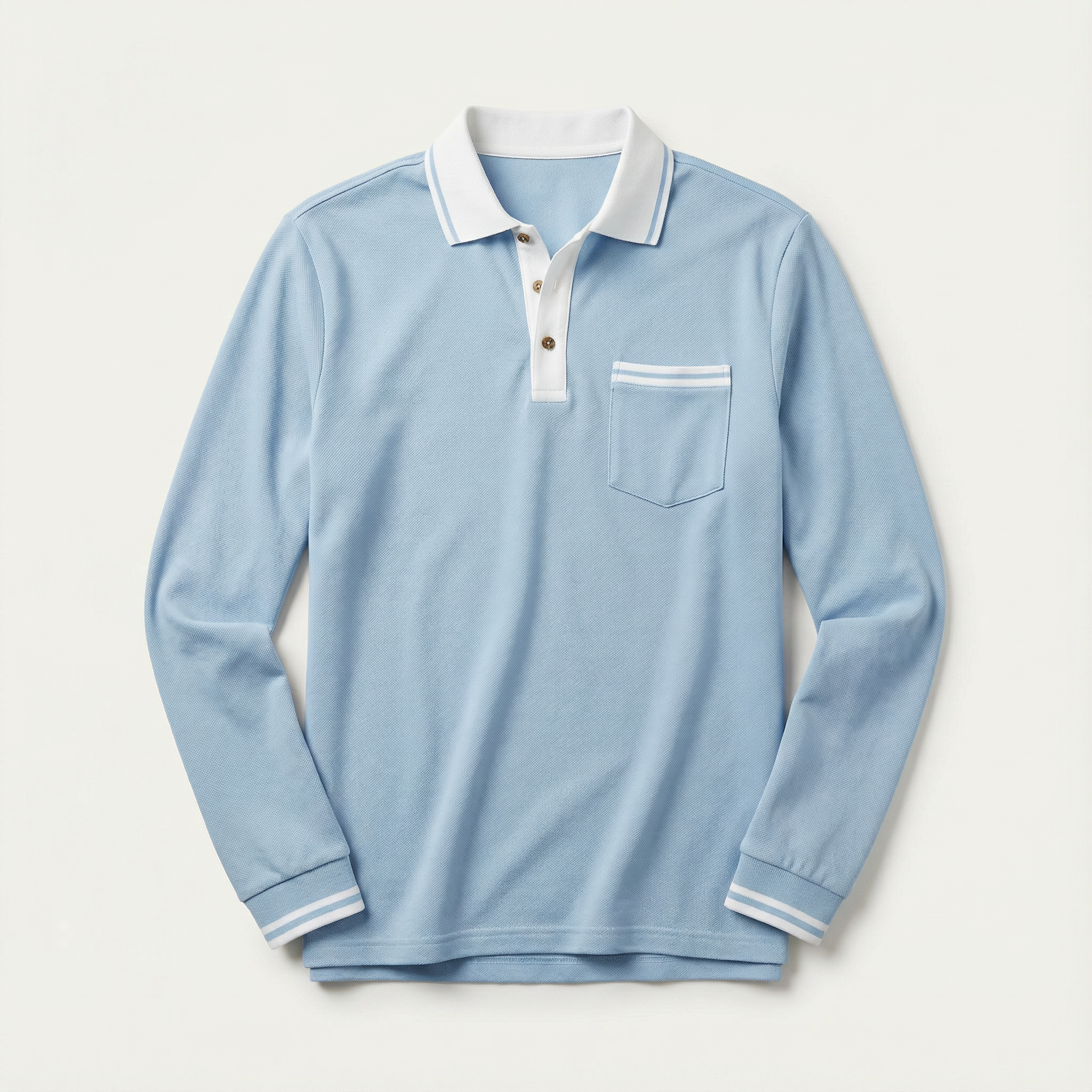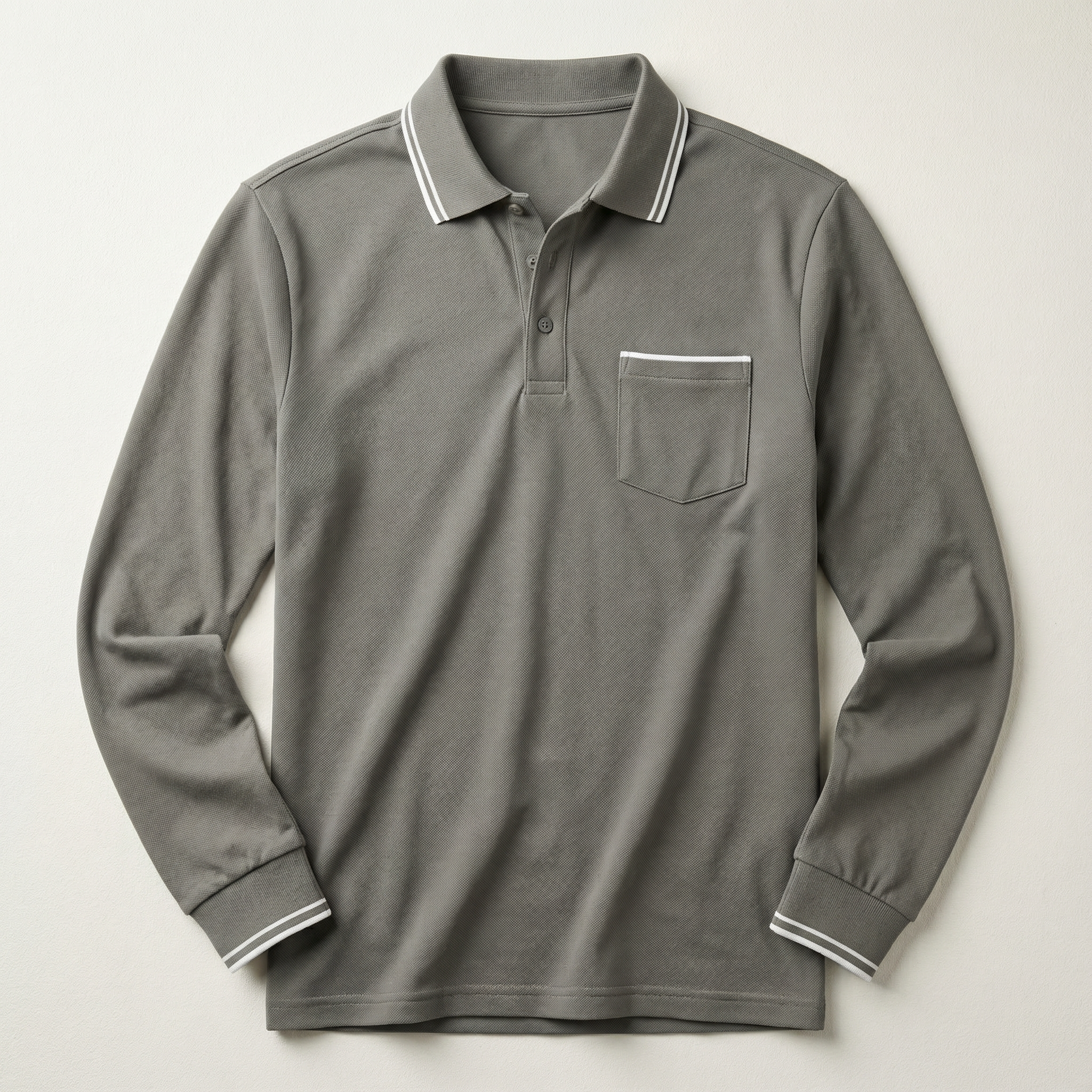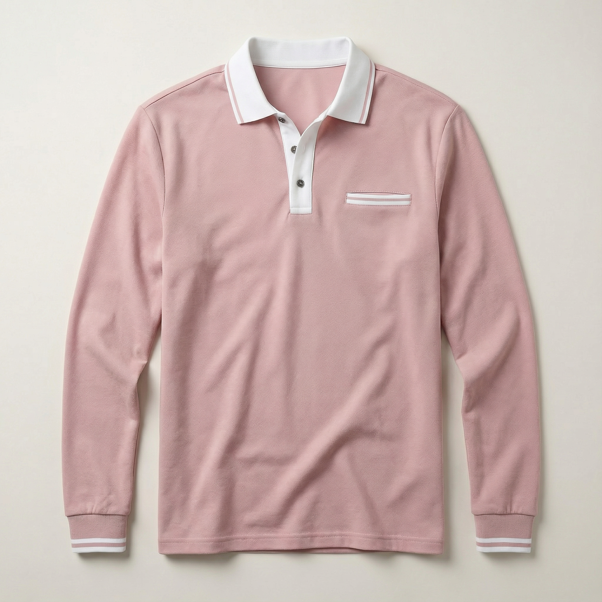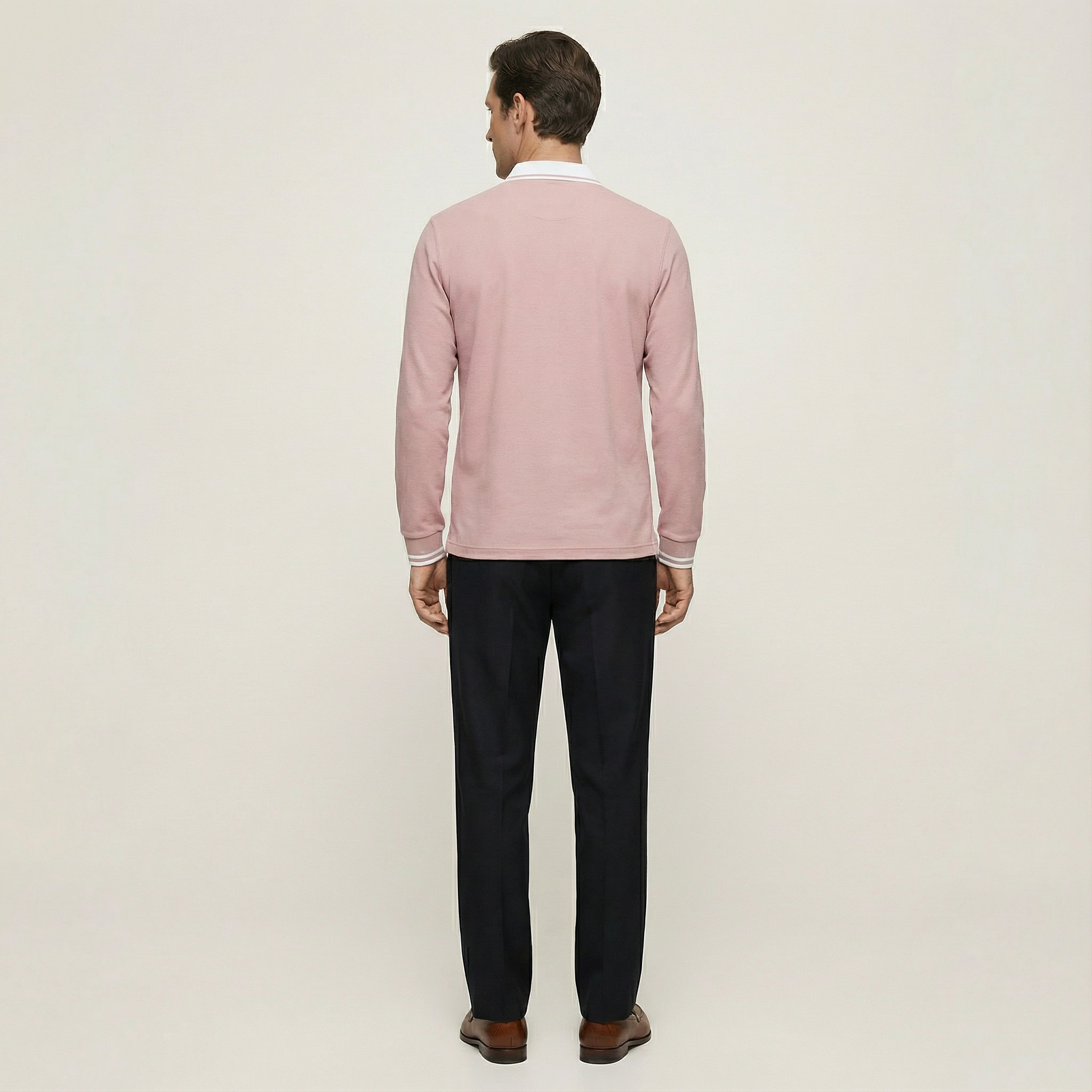 Men’s Long-Sleeve Polo Shirt – Contrast Collar Design