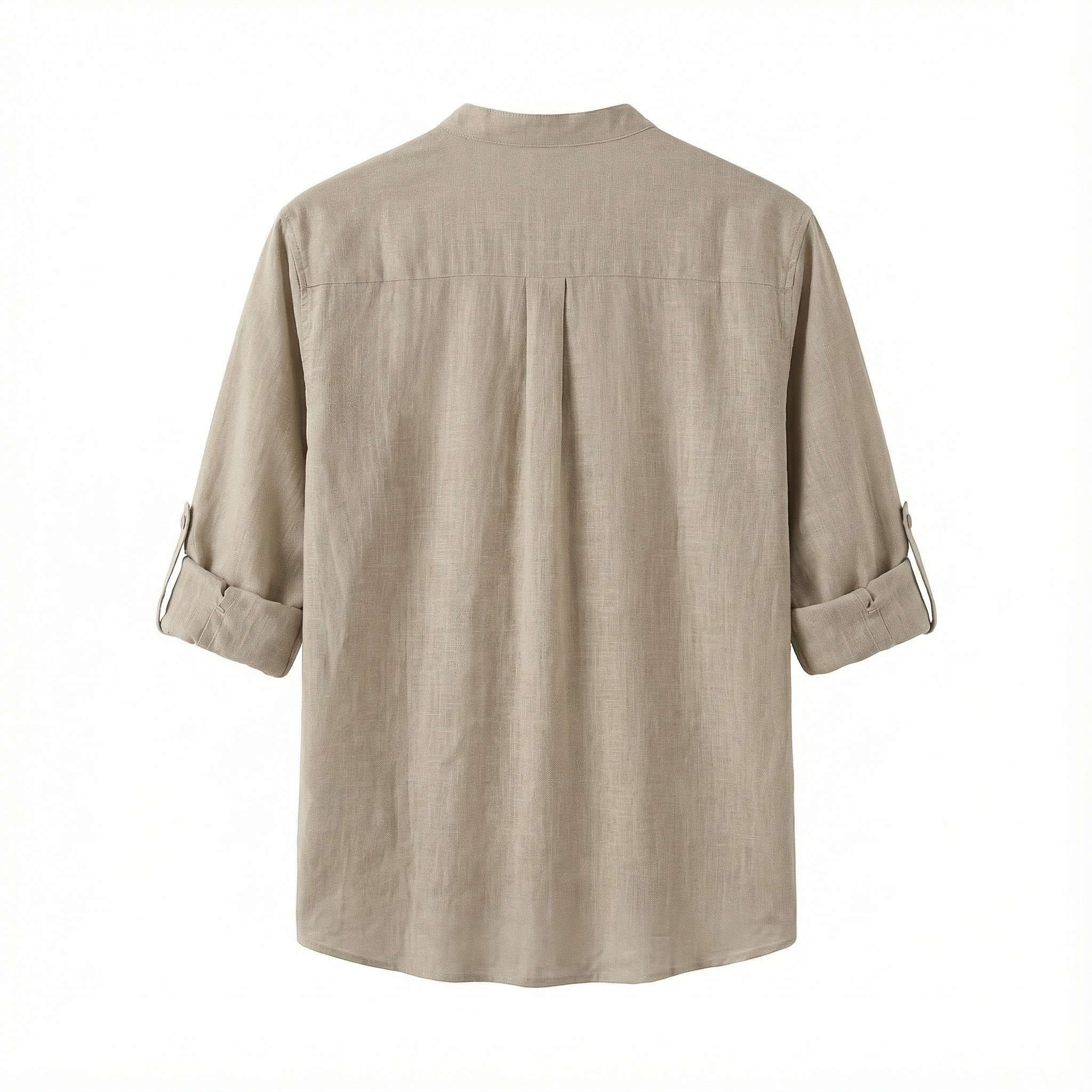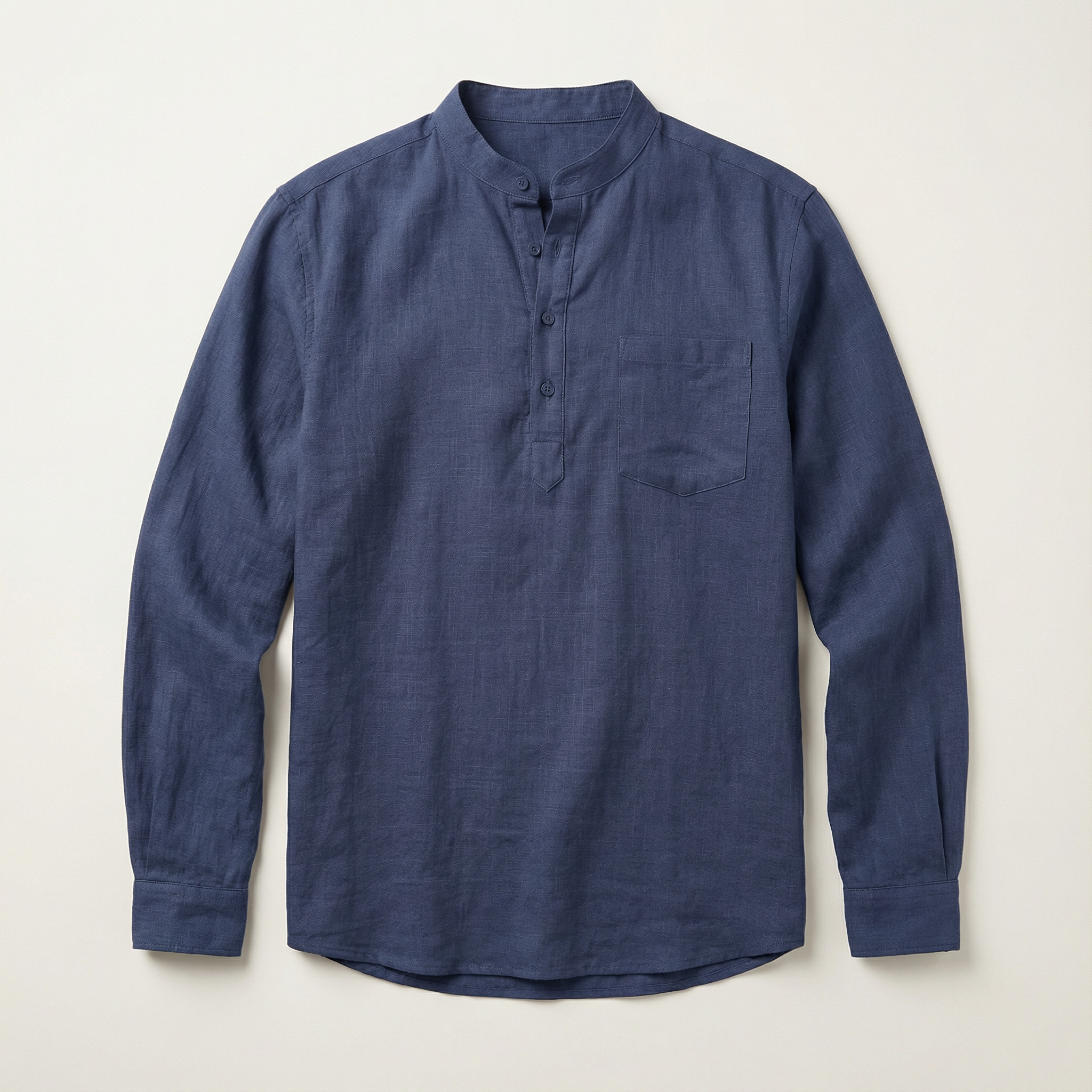 Men’s Long-Sleeve Shirt – Band Collar, Button Placket