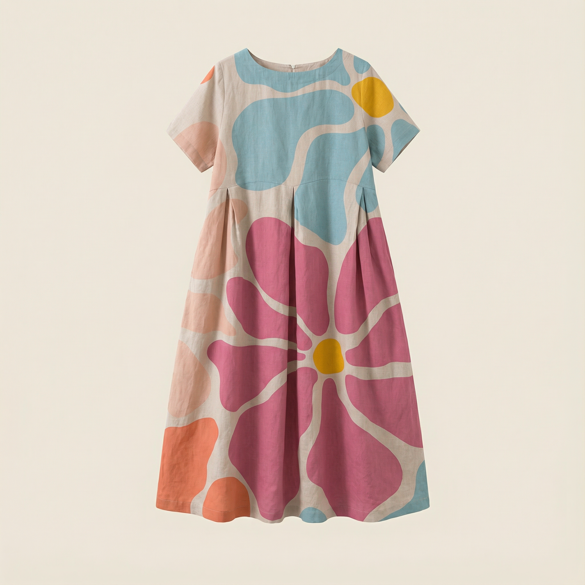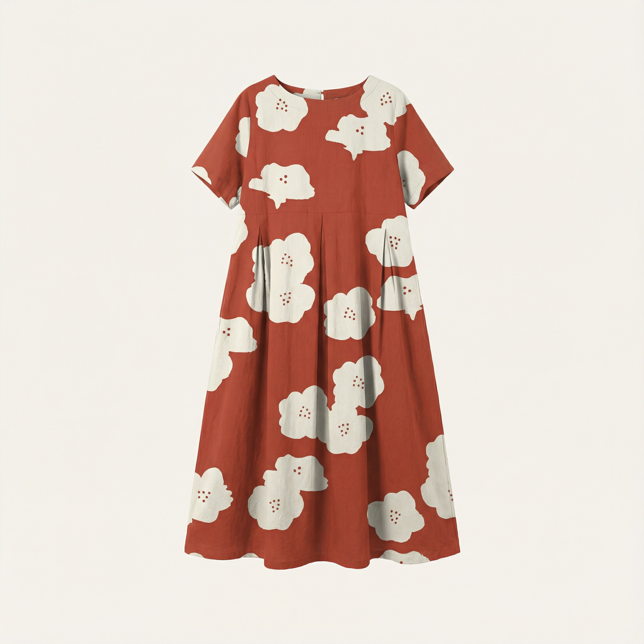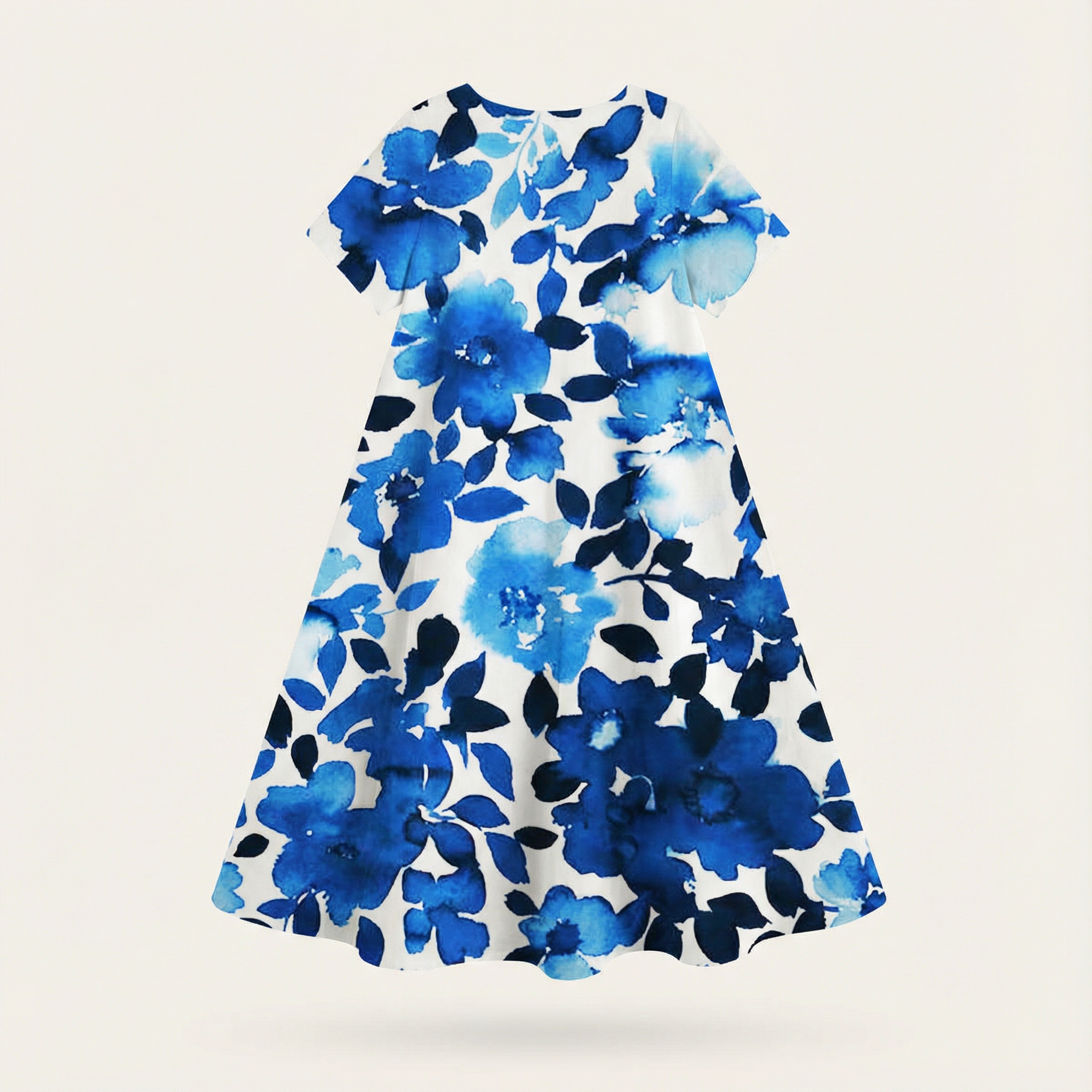 Women’s Midi Dress – Short Sleeves, Floral Print, Loose Fit
