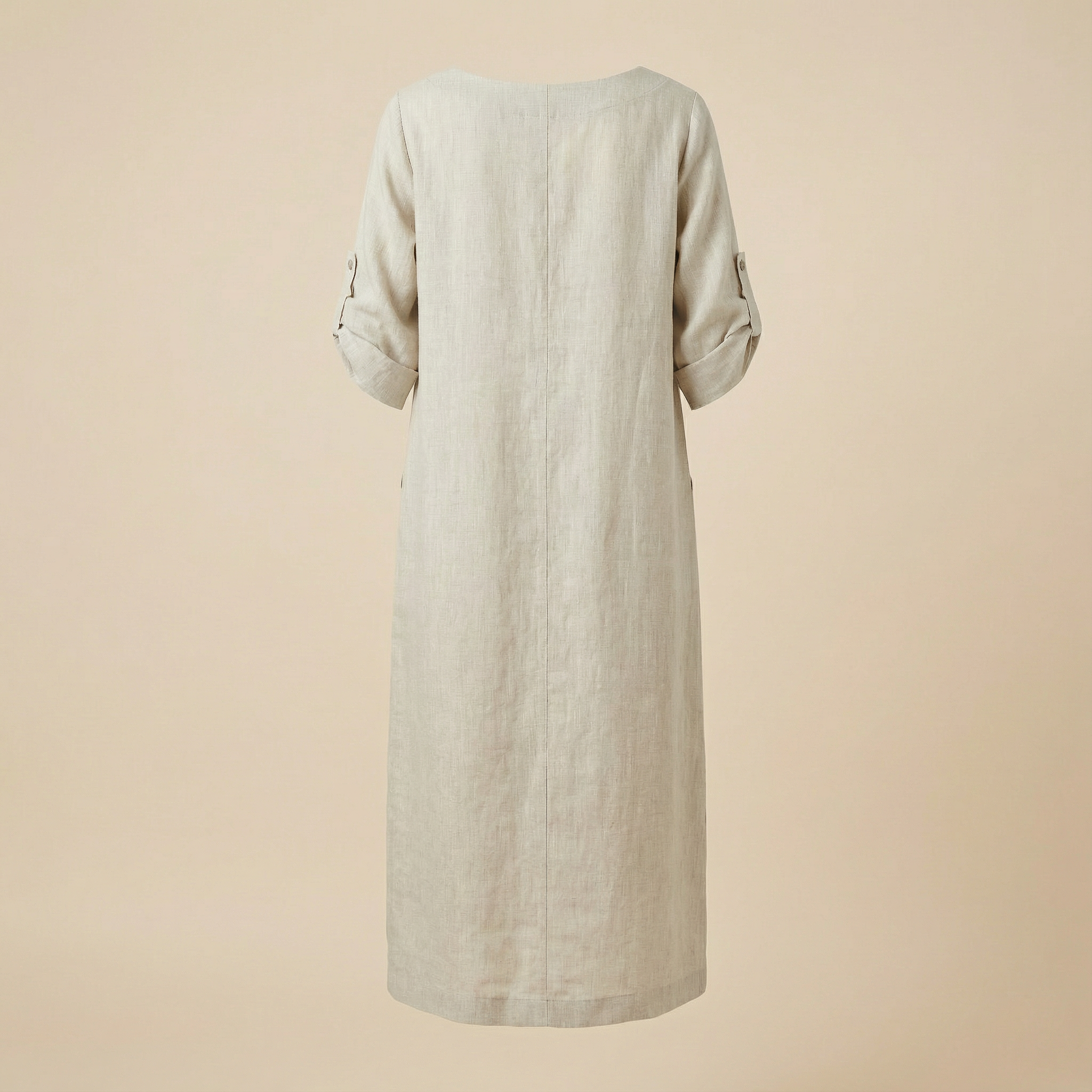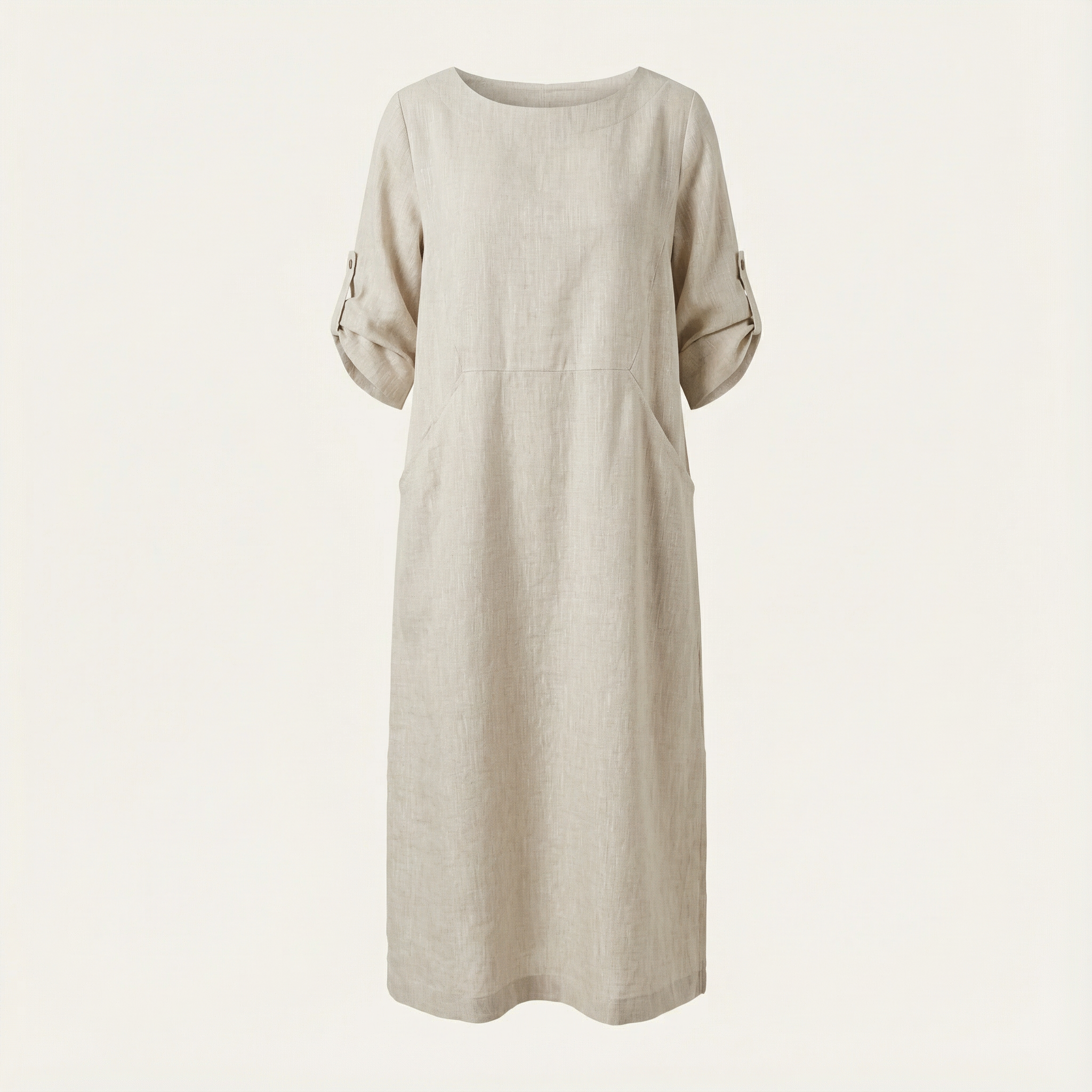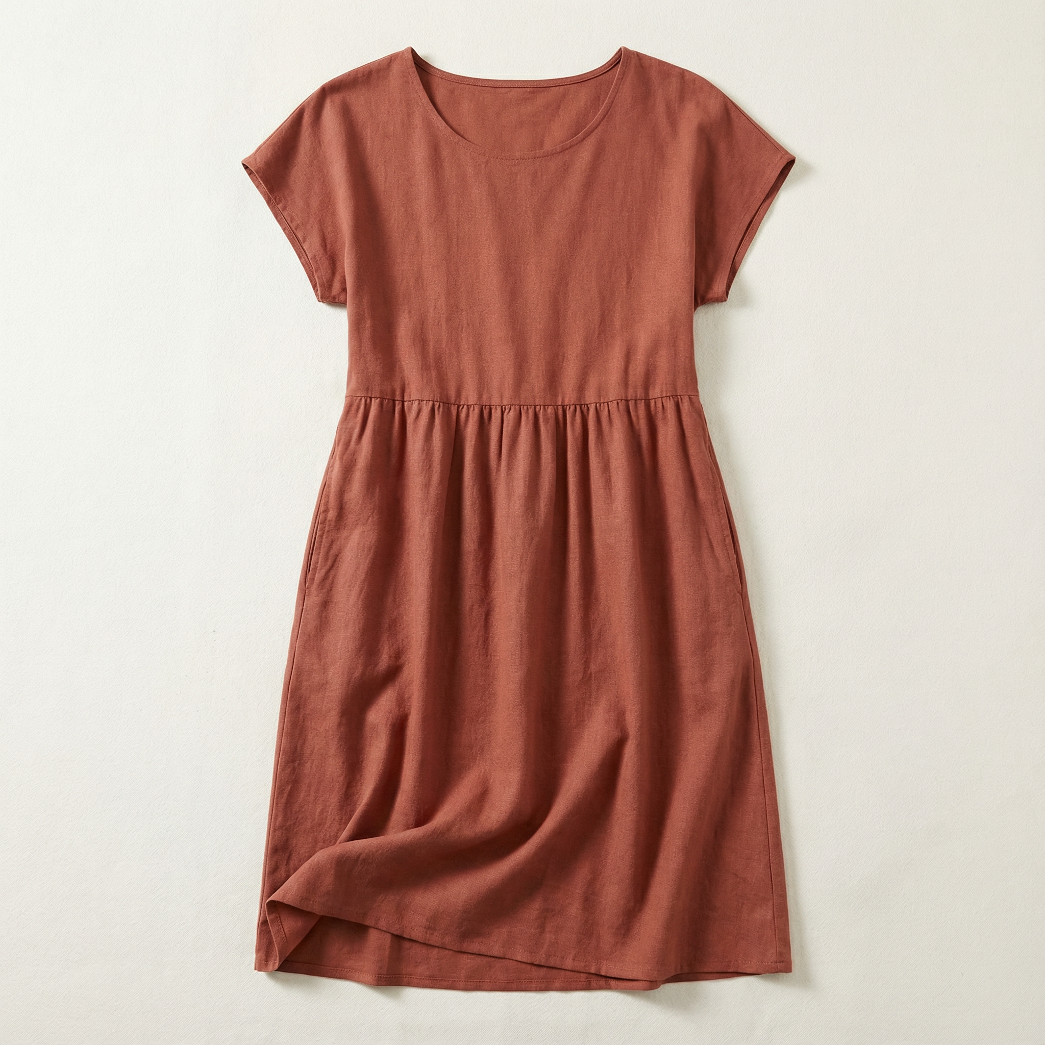 Women’s Midi Dress – Short Sleeves, Side Pockets