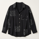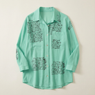This women’s blouse is designed for warm-weather and everyday wear. It features a button-front design with an all-over printed pattern.