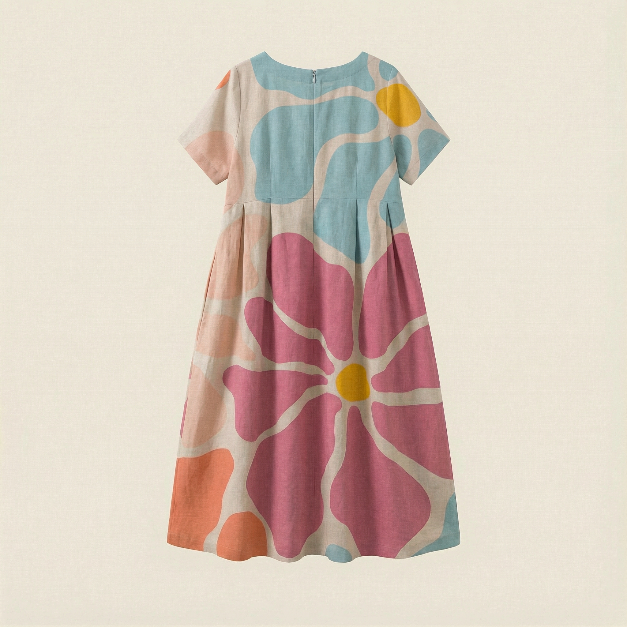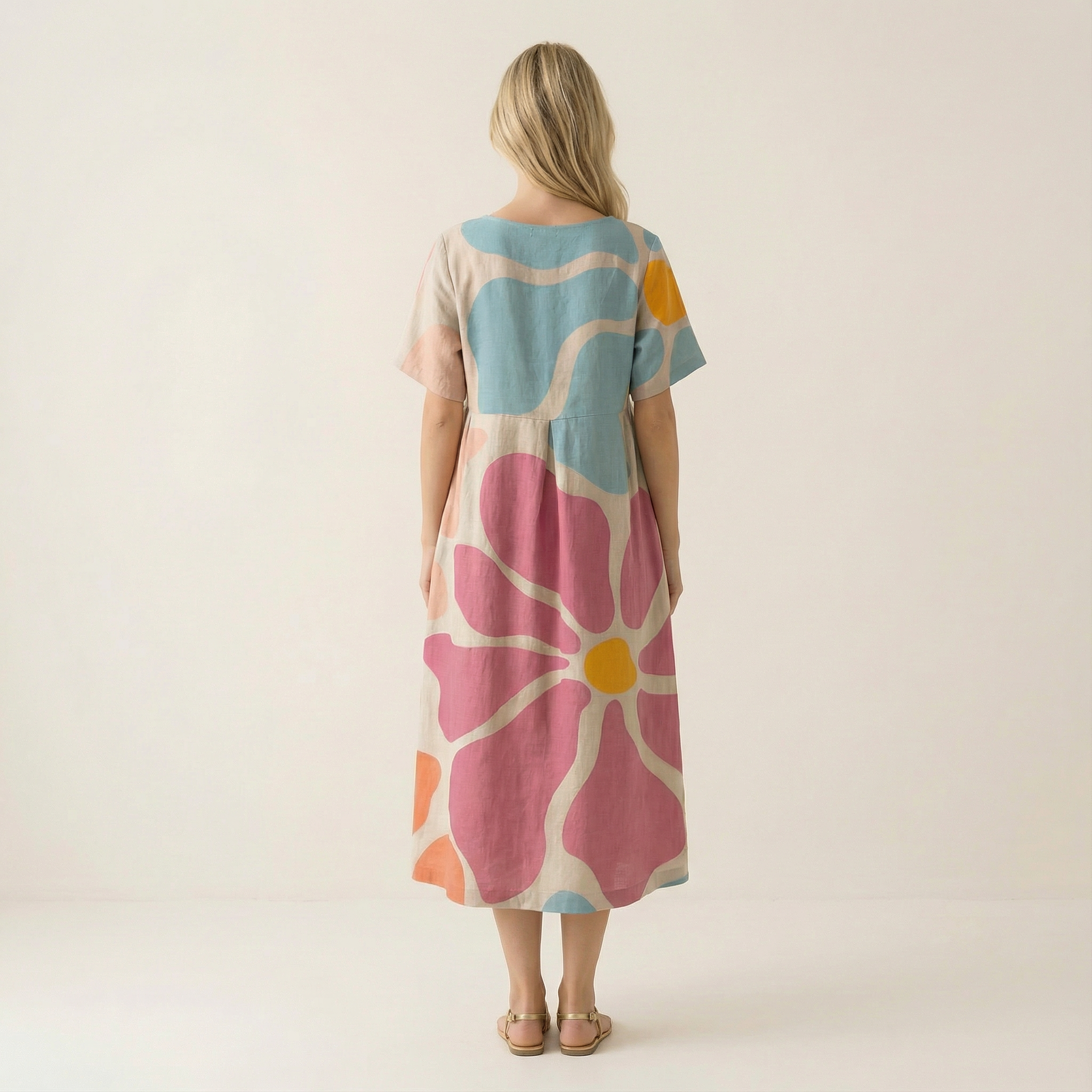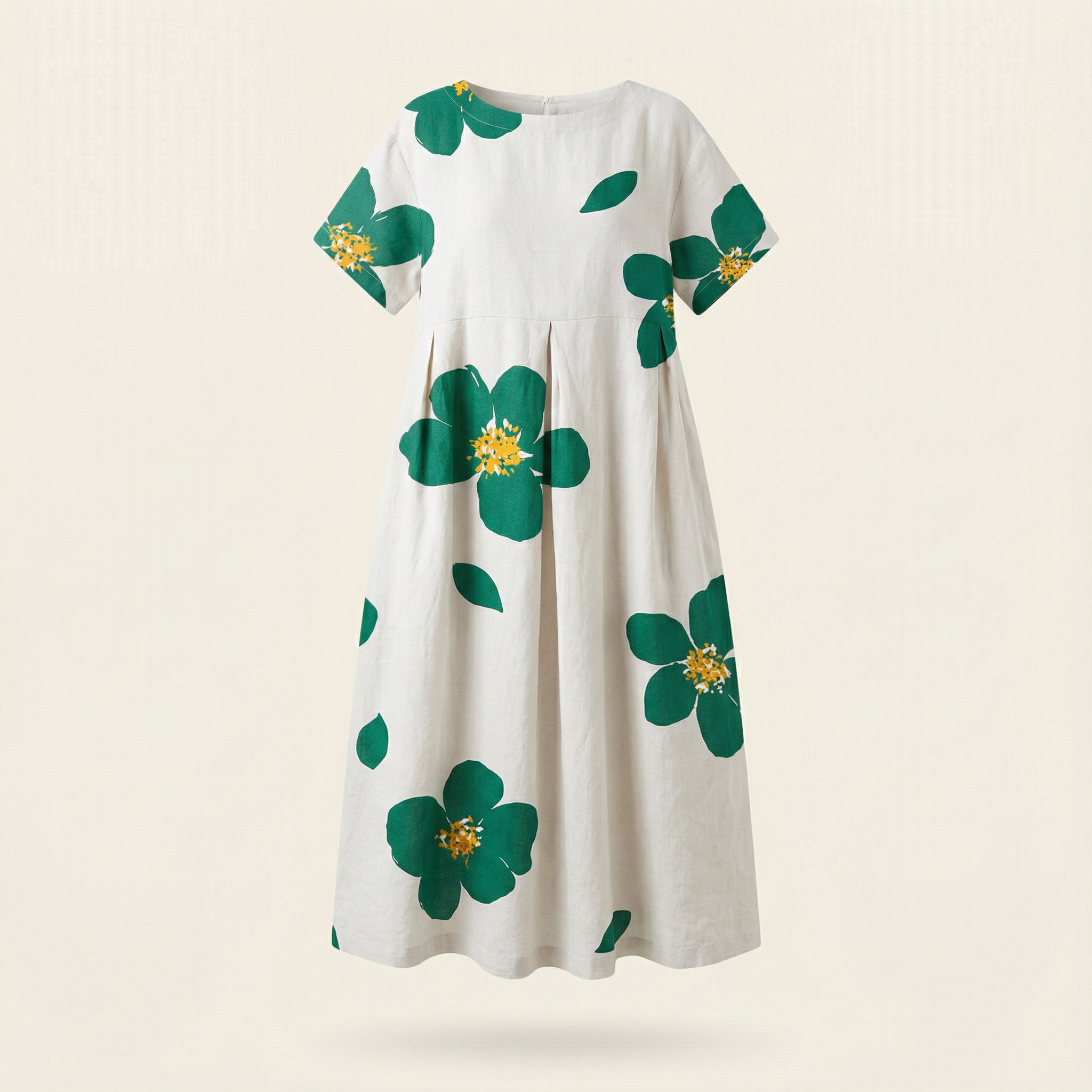 Women’s Midi Dress – Short Sleeves, Floral Print, Loose Fit