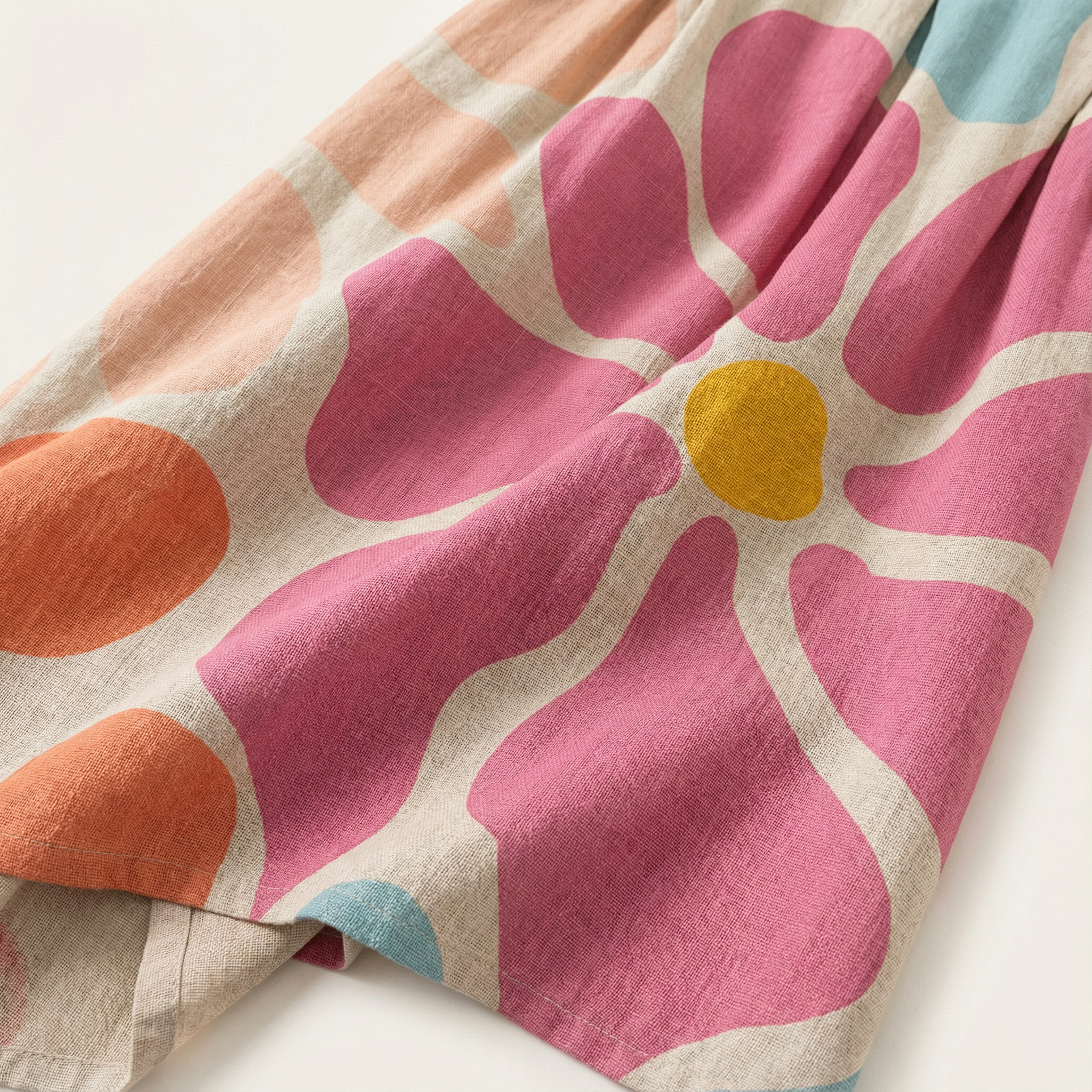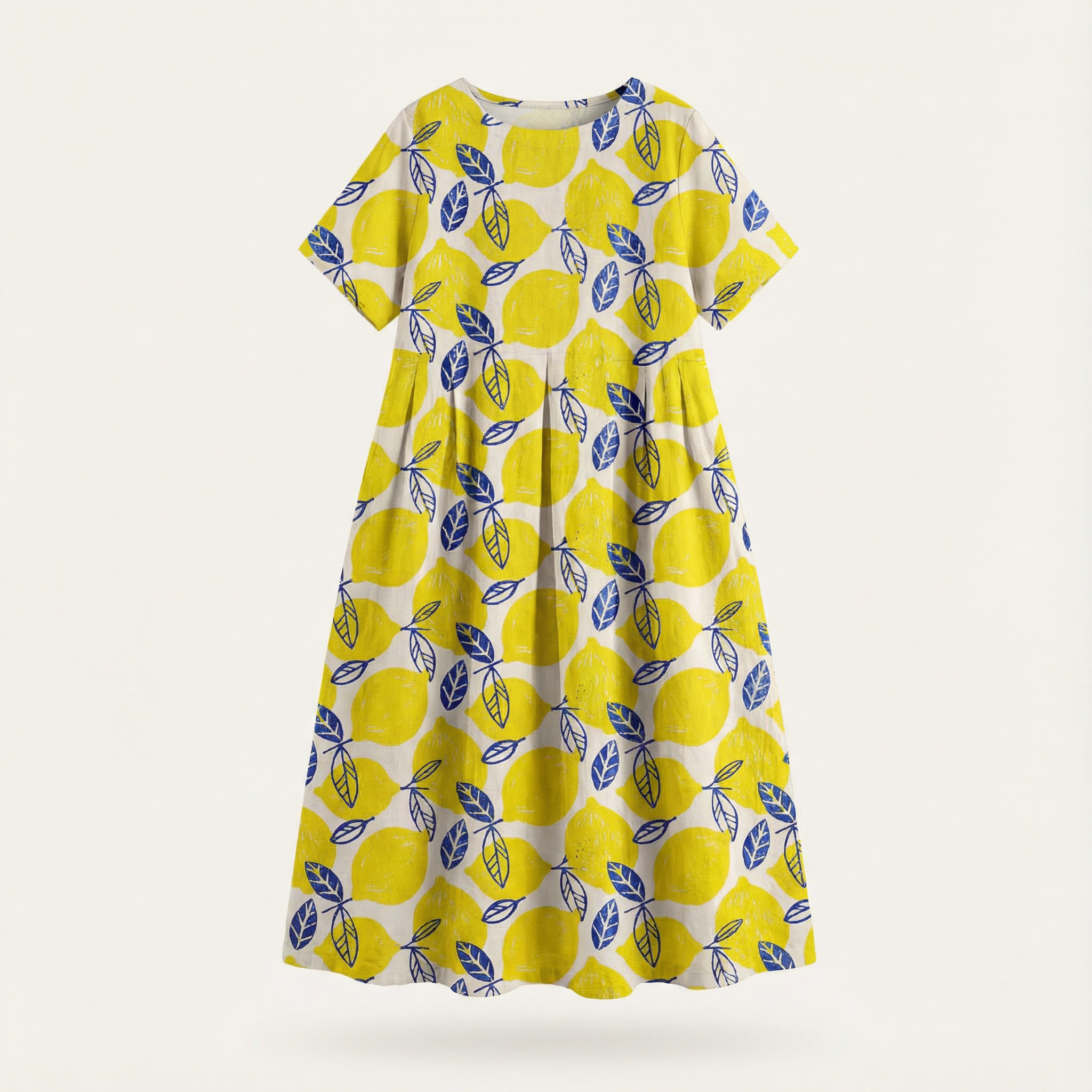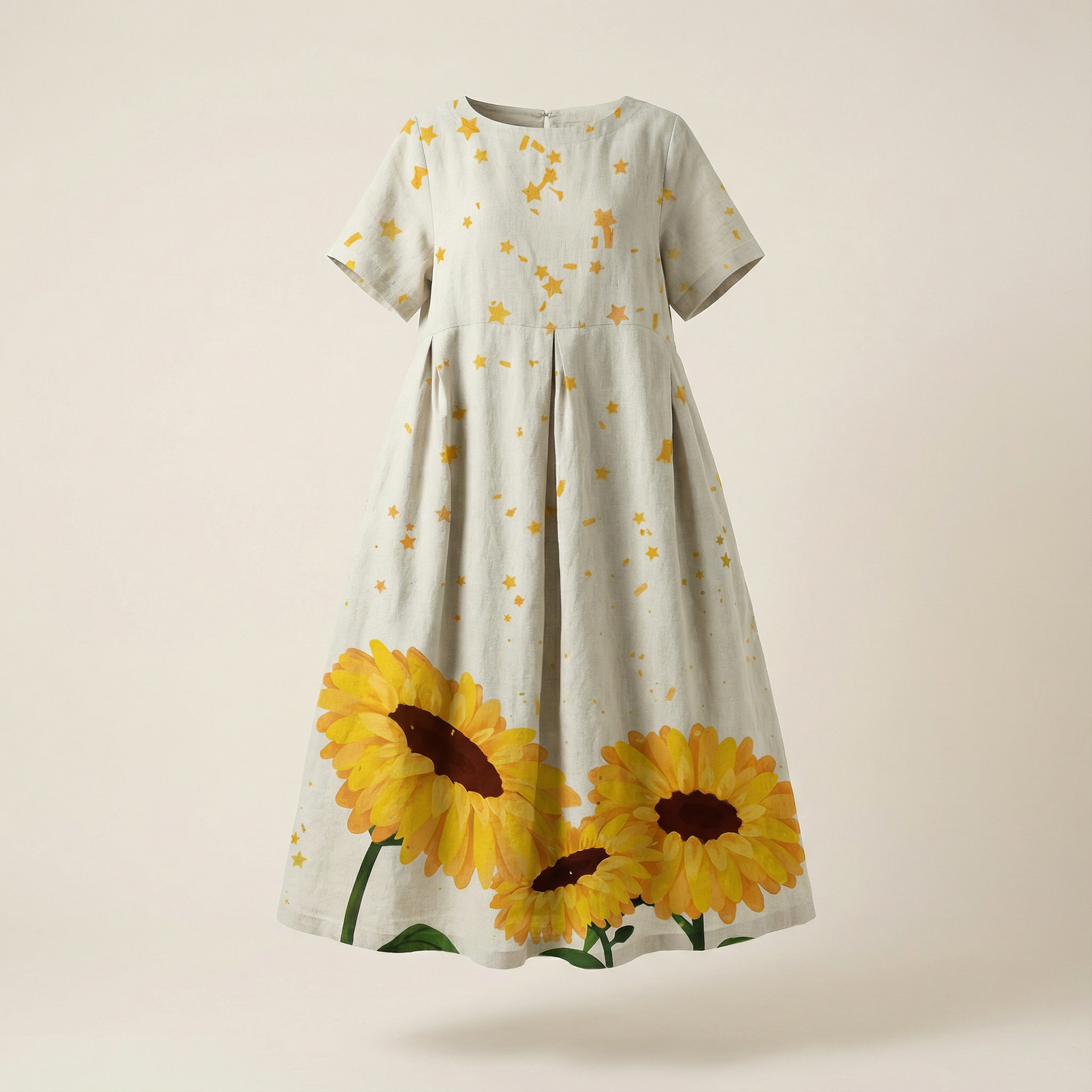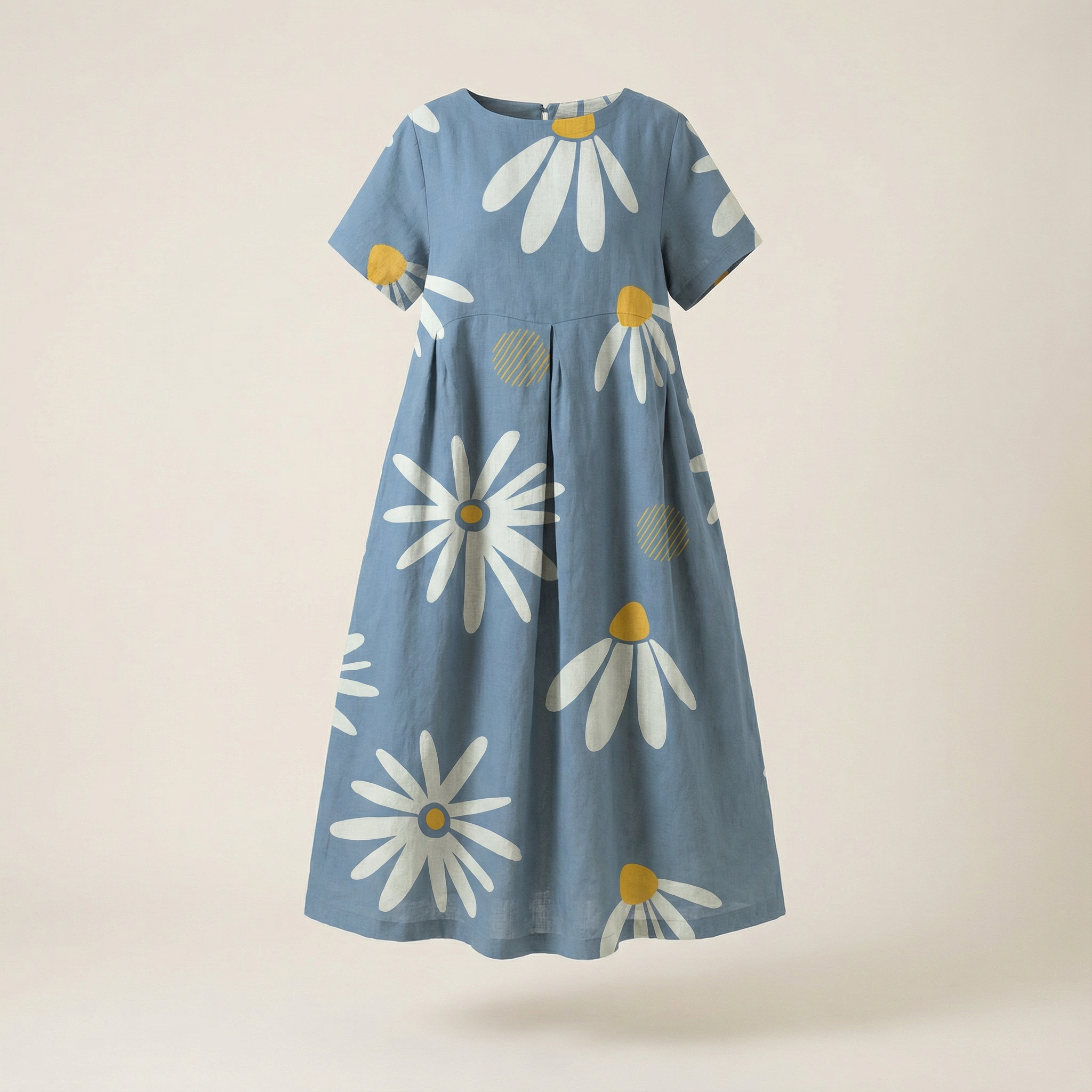 Women’s Midi Dress – Short Sleeves, Floral Print, Loose Fit