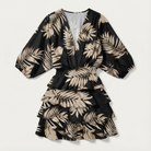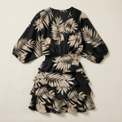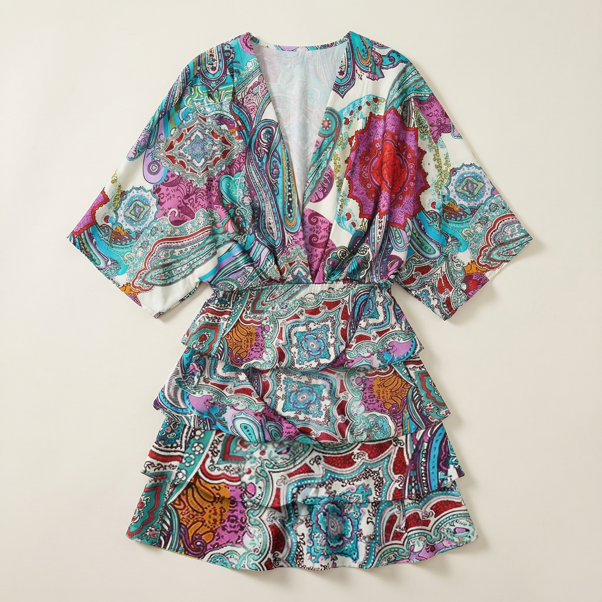 This women’s dress is designed for everyday or casual wear. It features a printed exterior with an irregular hemline.