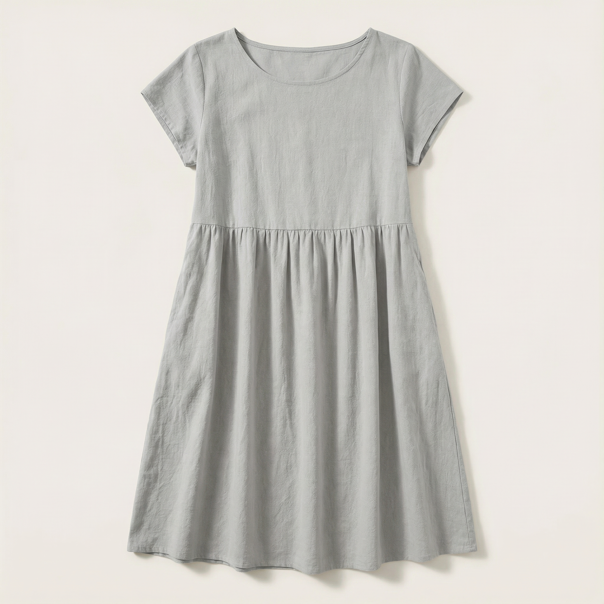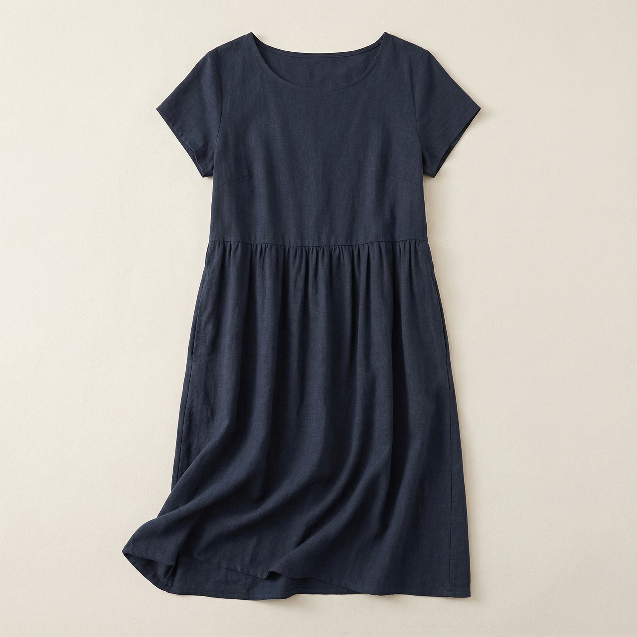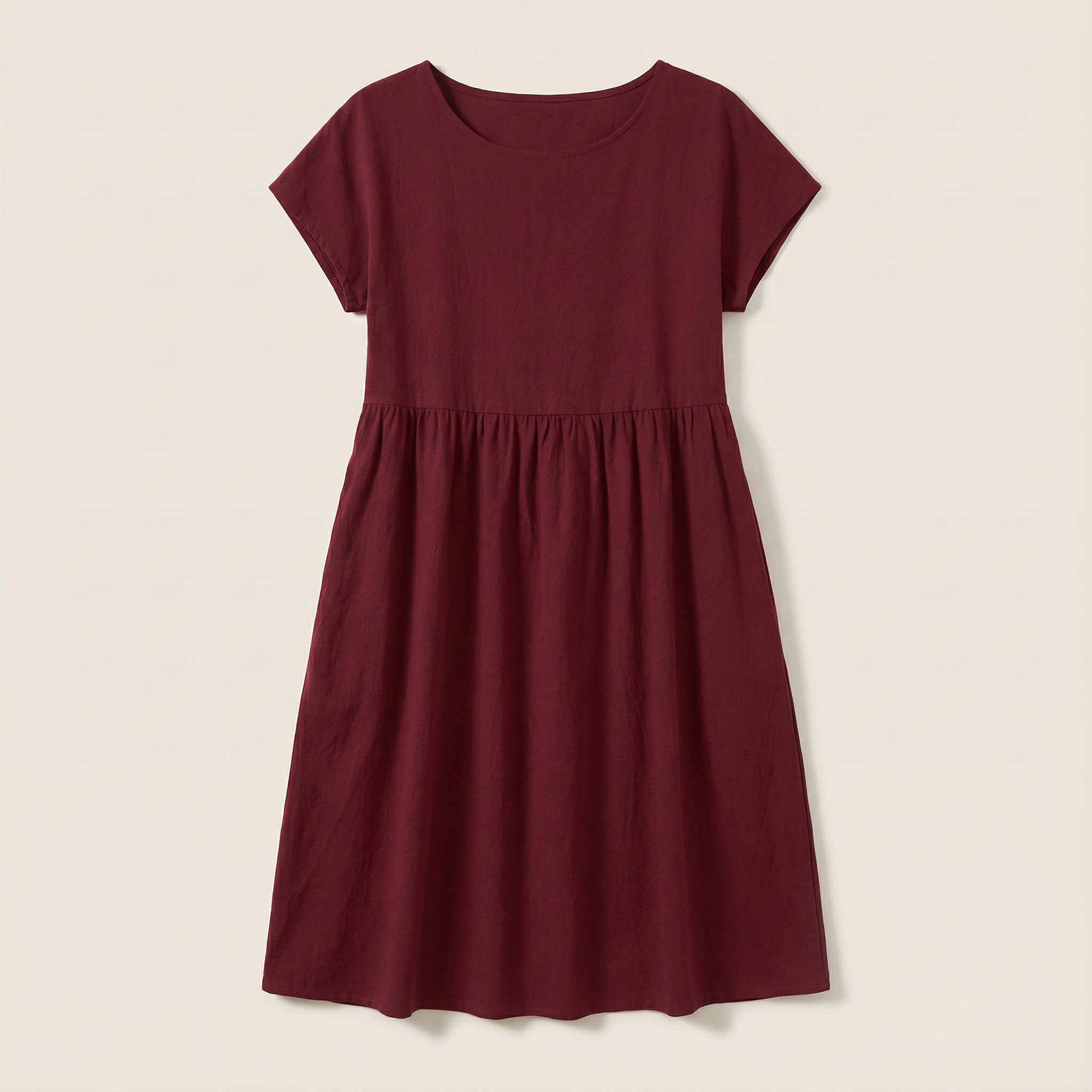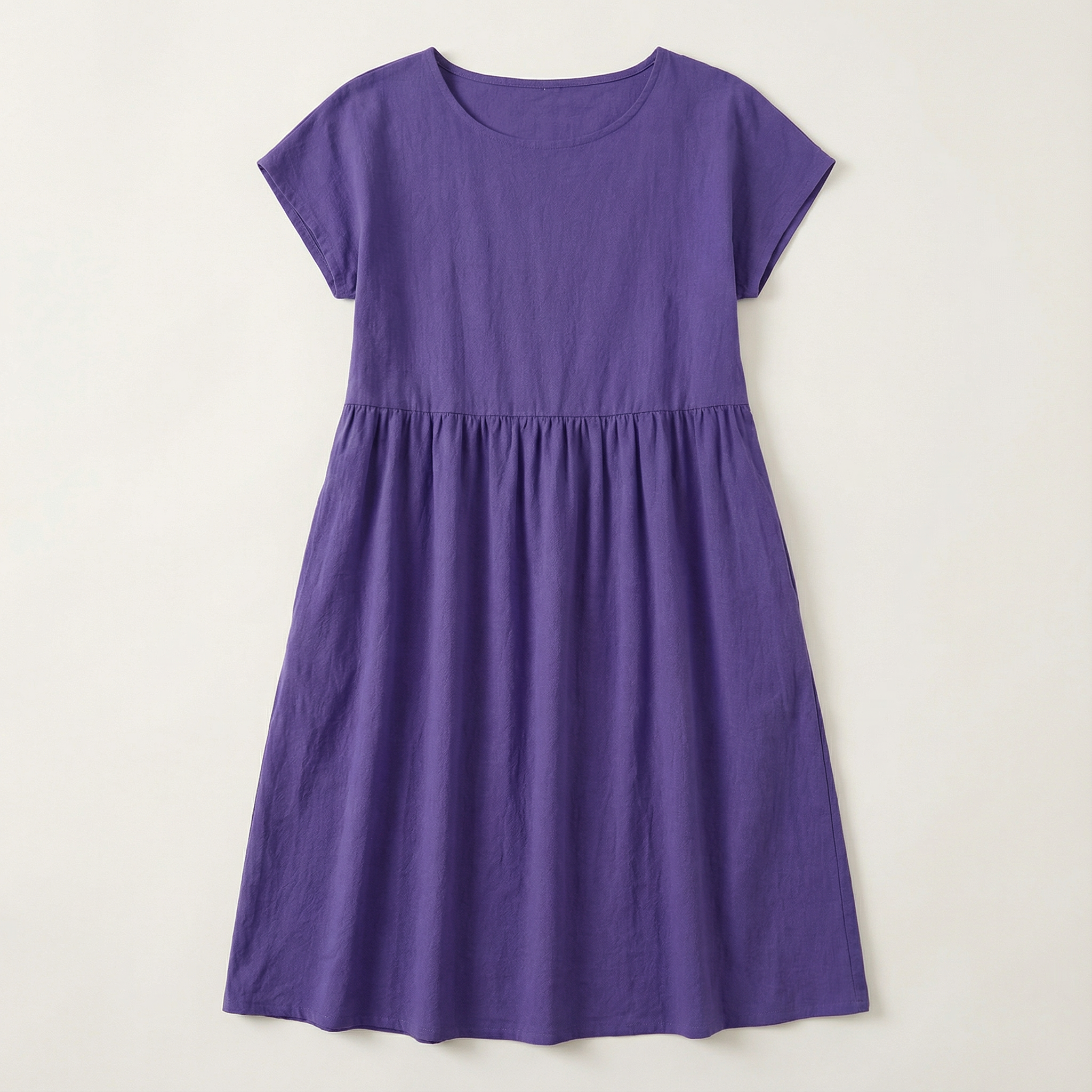 This women’s dress is designed for everyday and casual wear. It features a simple round neckline and a knee-length cut.
