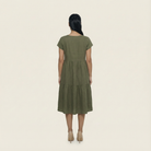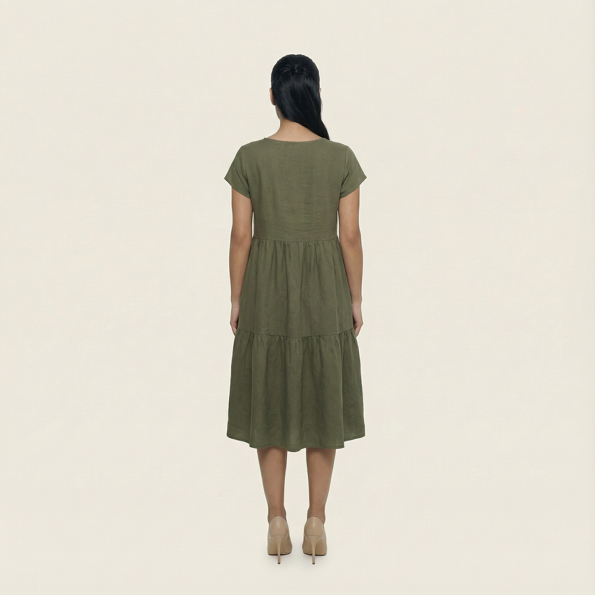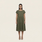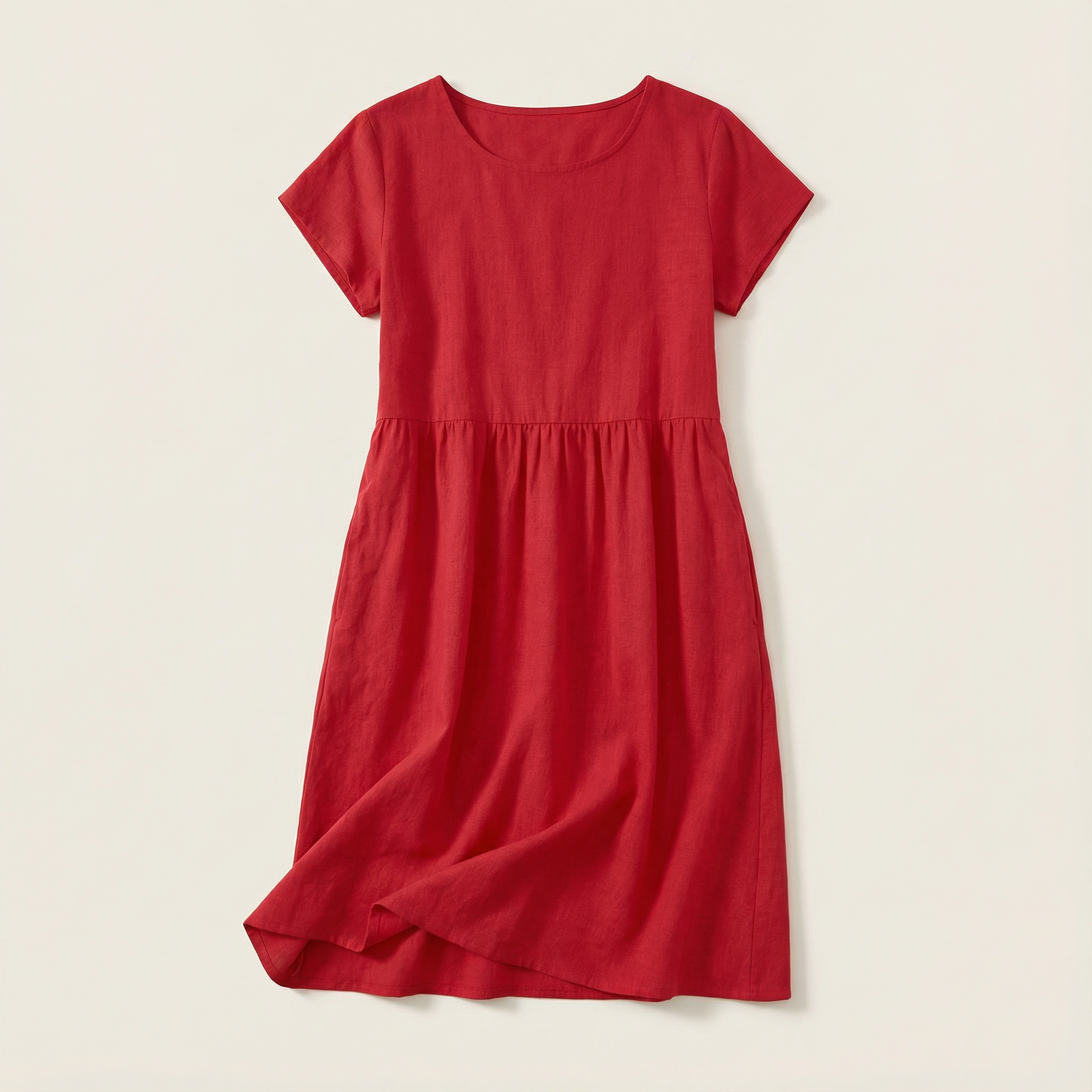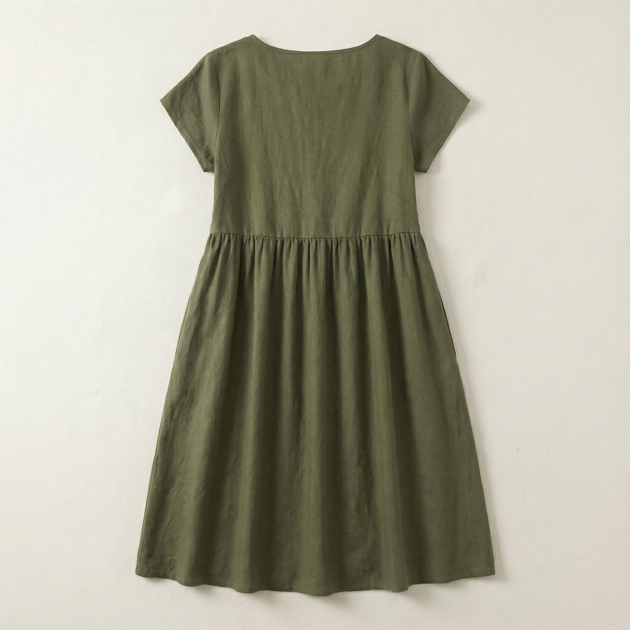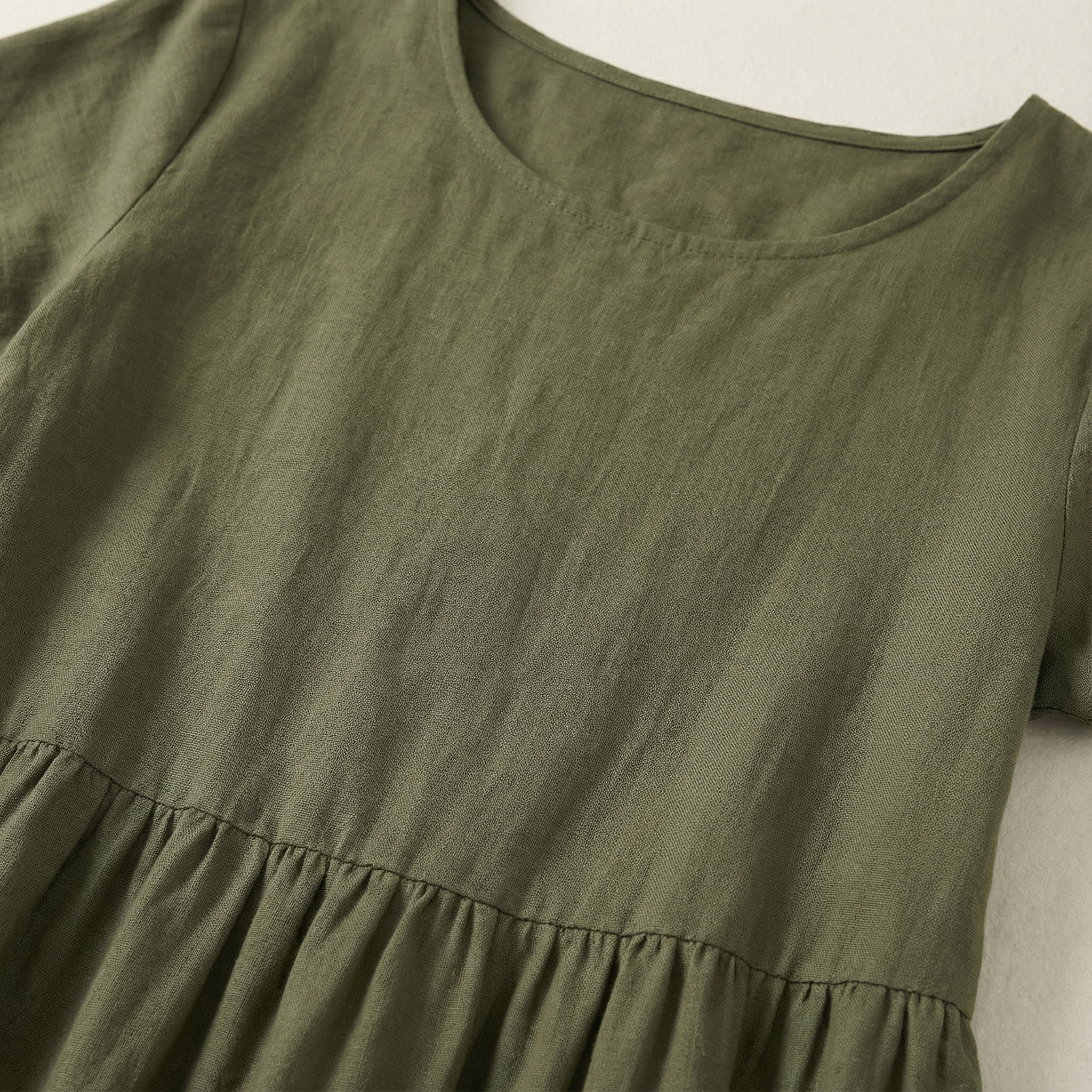 This women’s dress is designed for everyday and casual wear. It features a simple round neckline and a knee-length cut.