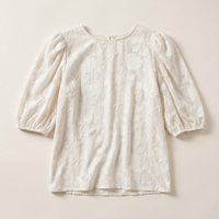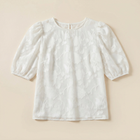 Women’s blouse featuring a floral texture pattern and puff sleeves. Designed for everyday and casual wear.