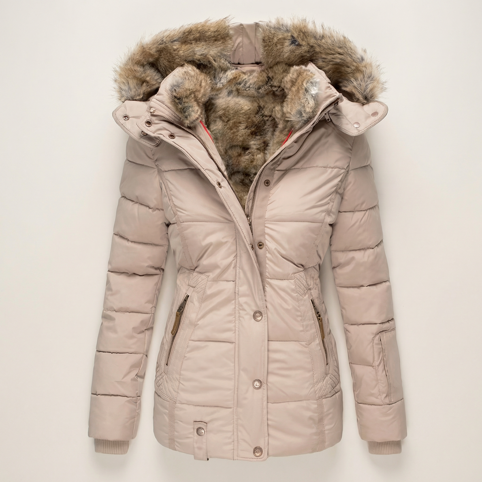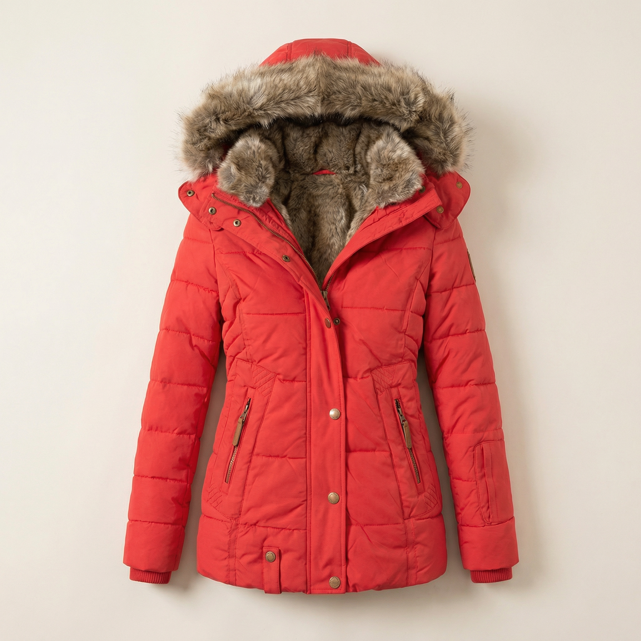 Women’s Puffer Coat – Hooded Design with Faux Fur Trim