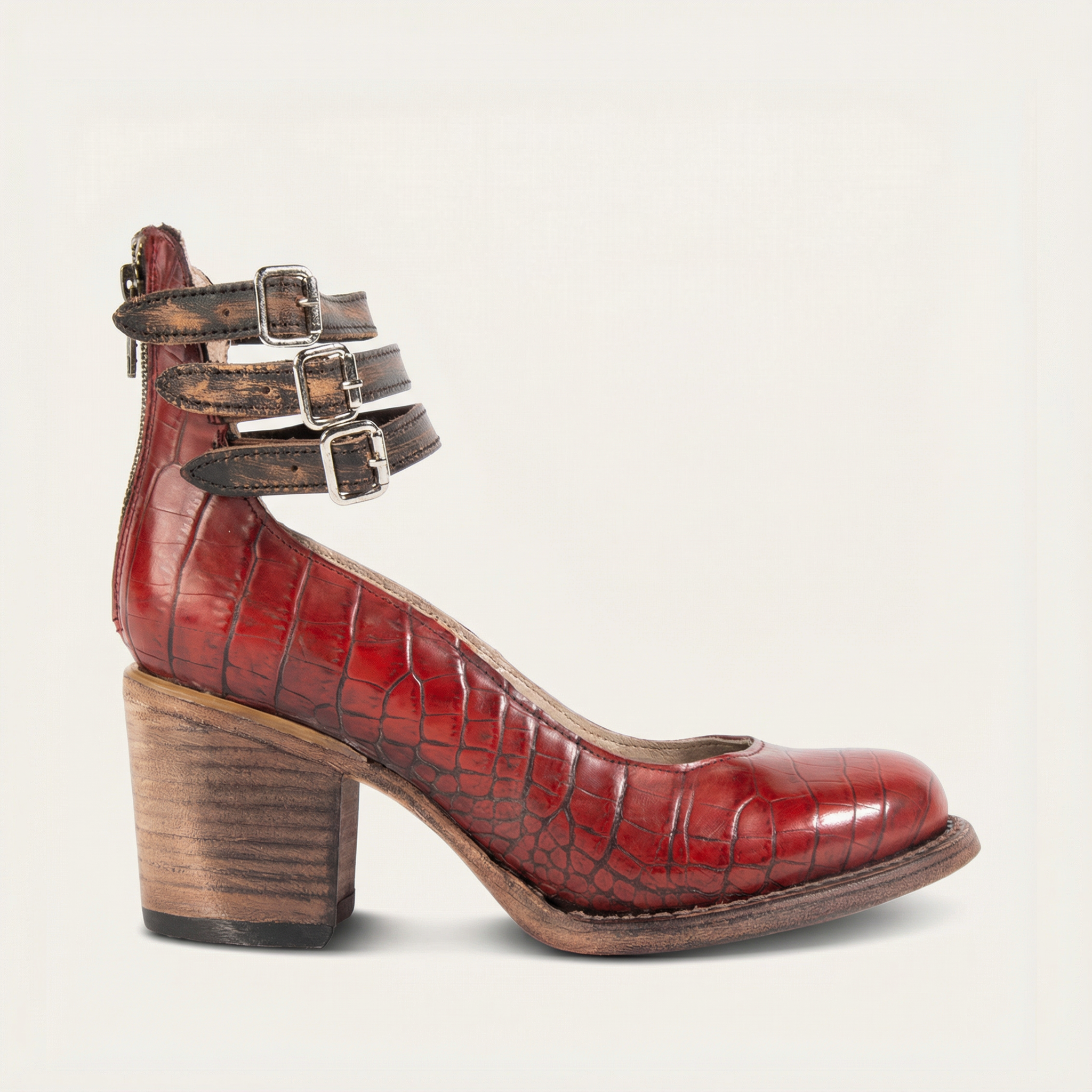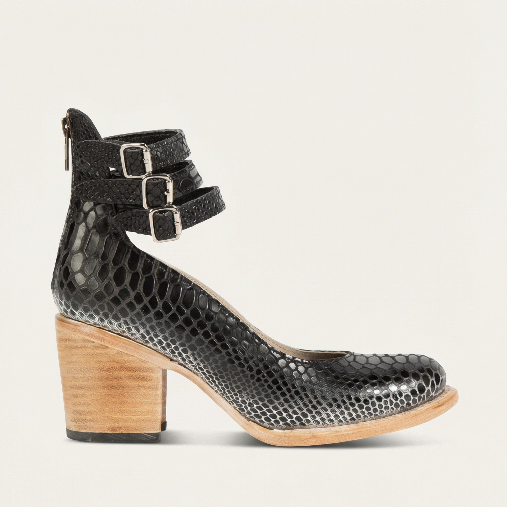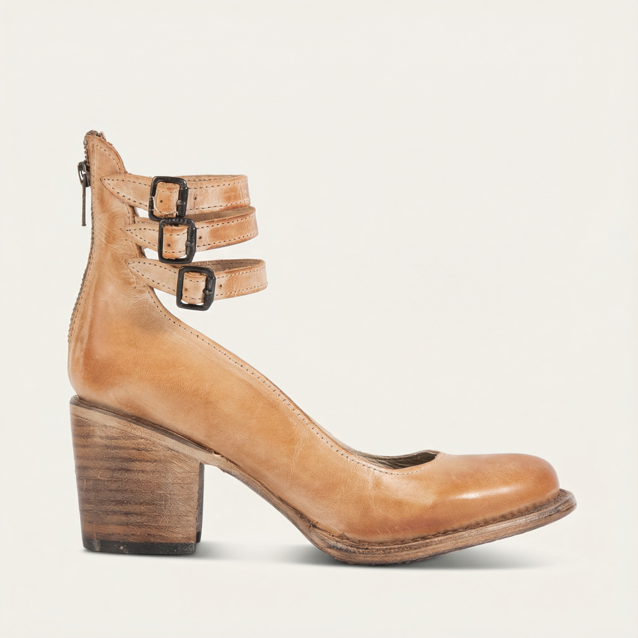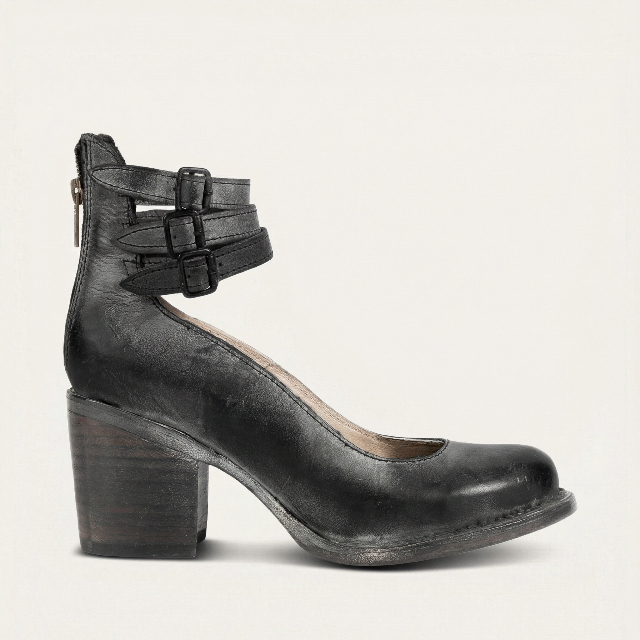 Women’s Ankle Boots – Block Heel, Buckle Strap Closure