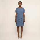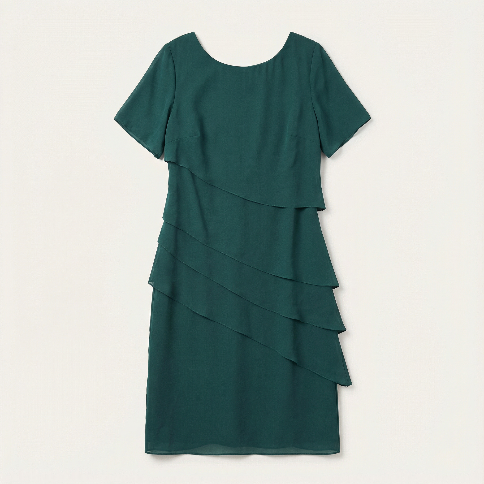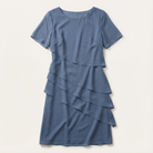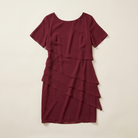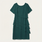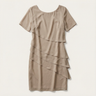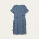 This women’s dress is designed for formal and occasion wear. It features a knee-length cut with layered detailing.