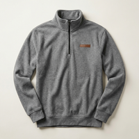 Men’s long sleeve sweater with a stand collar and quarter-zip front. Designed with ribbed cuffs and hem.