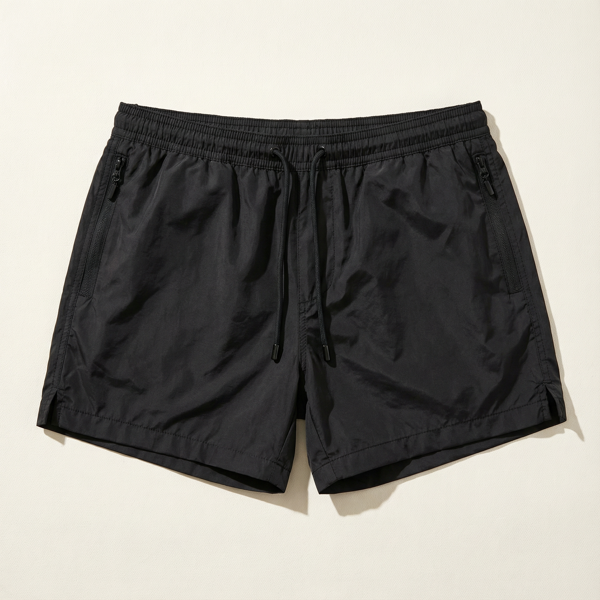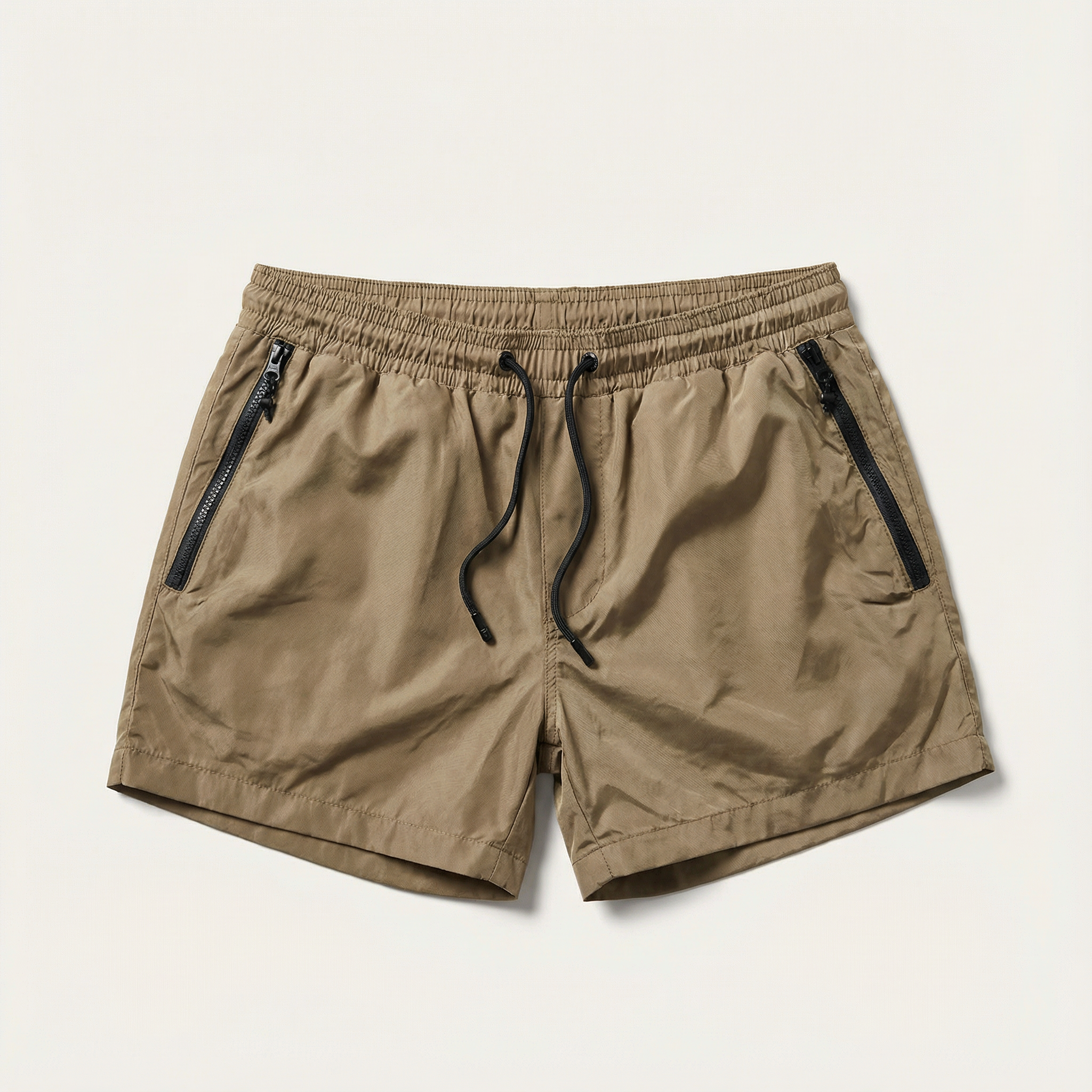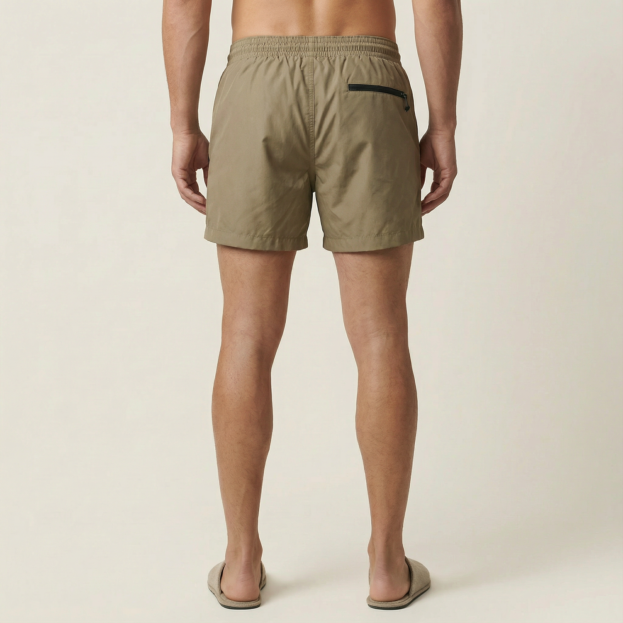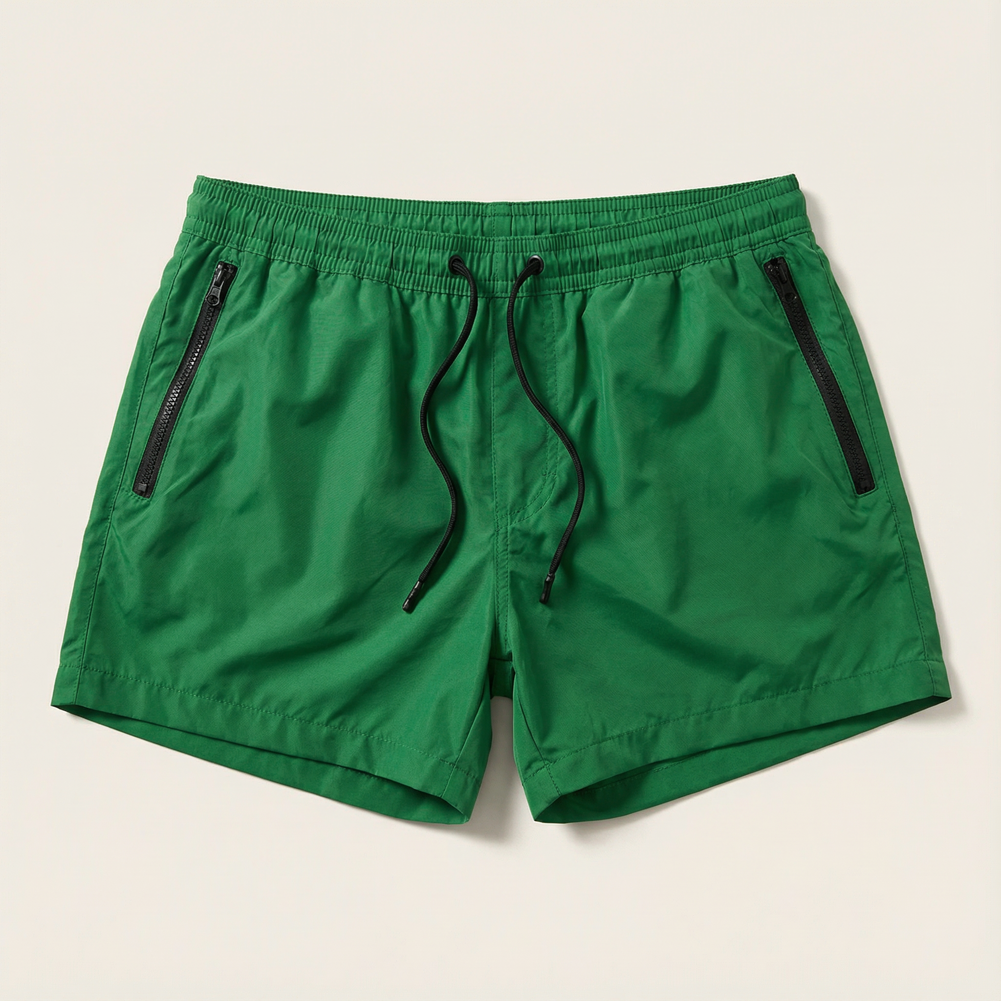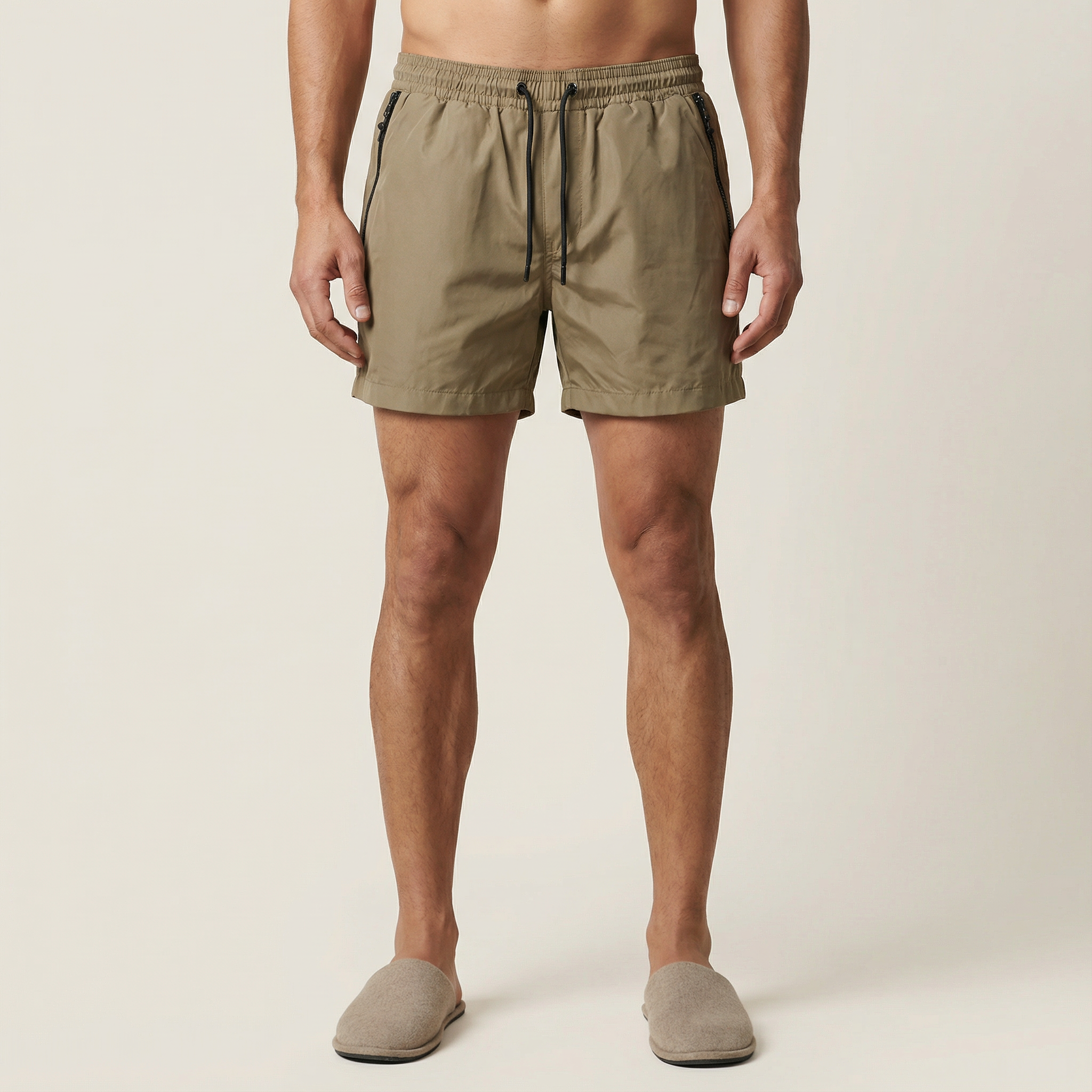 Men’s Short-Length Beach Shorts – Drawstring Waist, Side Zip Pockets