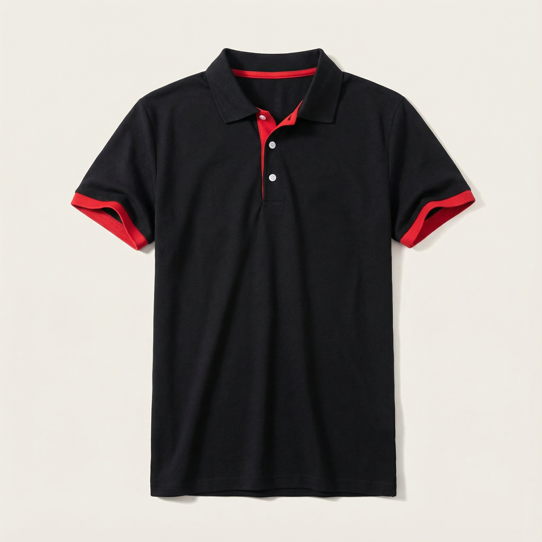 Men’s Short-Sleeve Polo Shirt – Button Placket, Contrast Trim