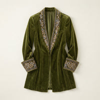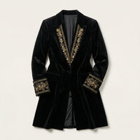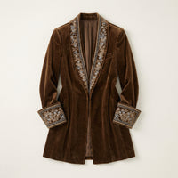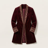 Women’s Long Coat – Embroidered Trim Design with Open Front