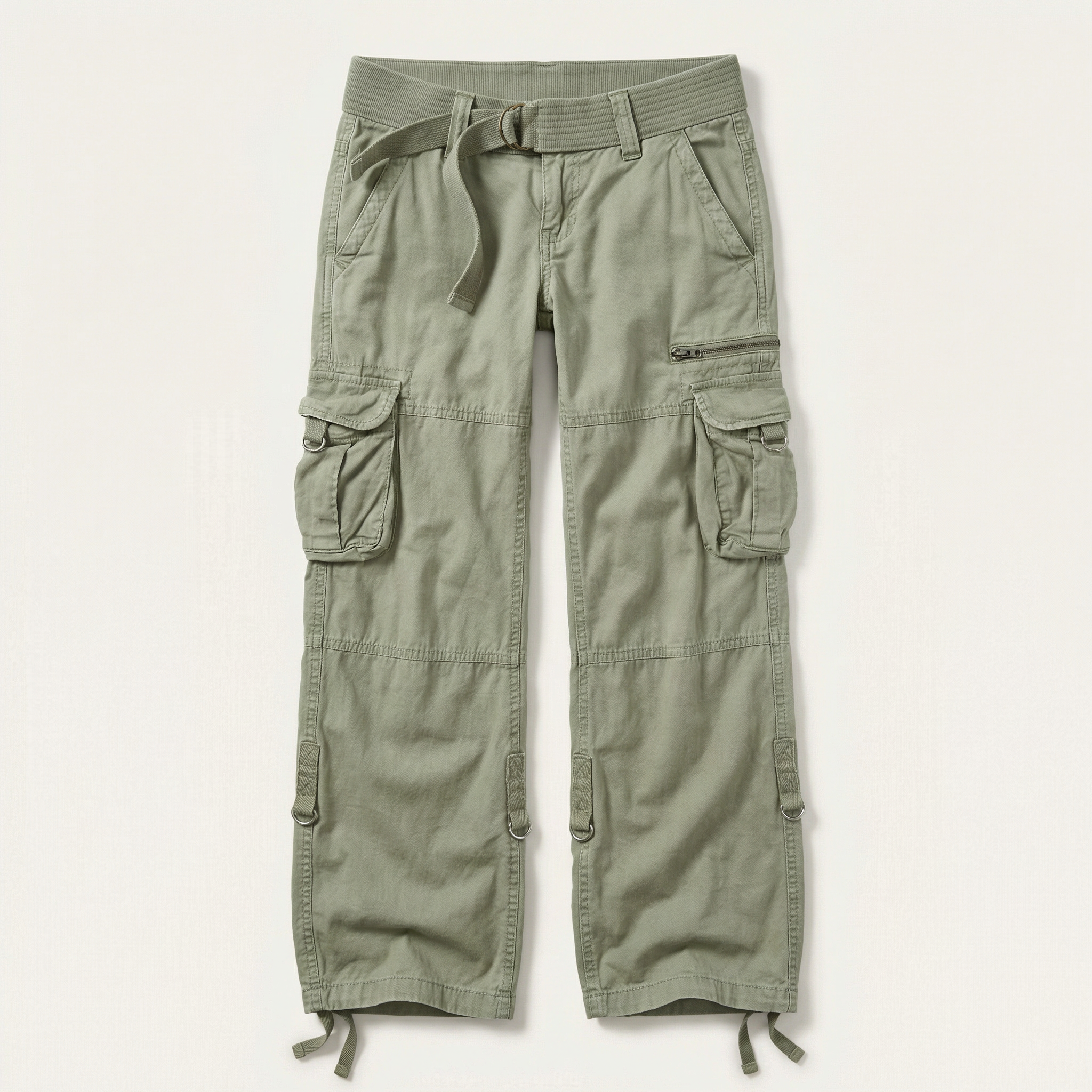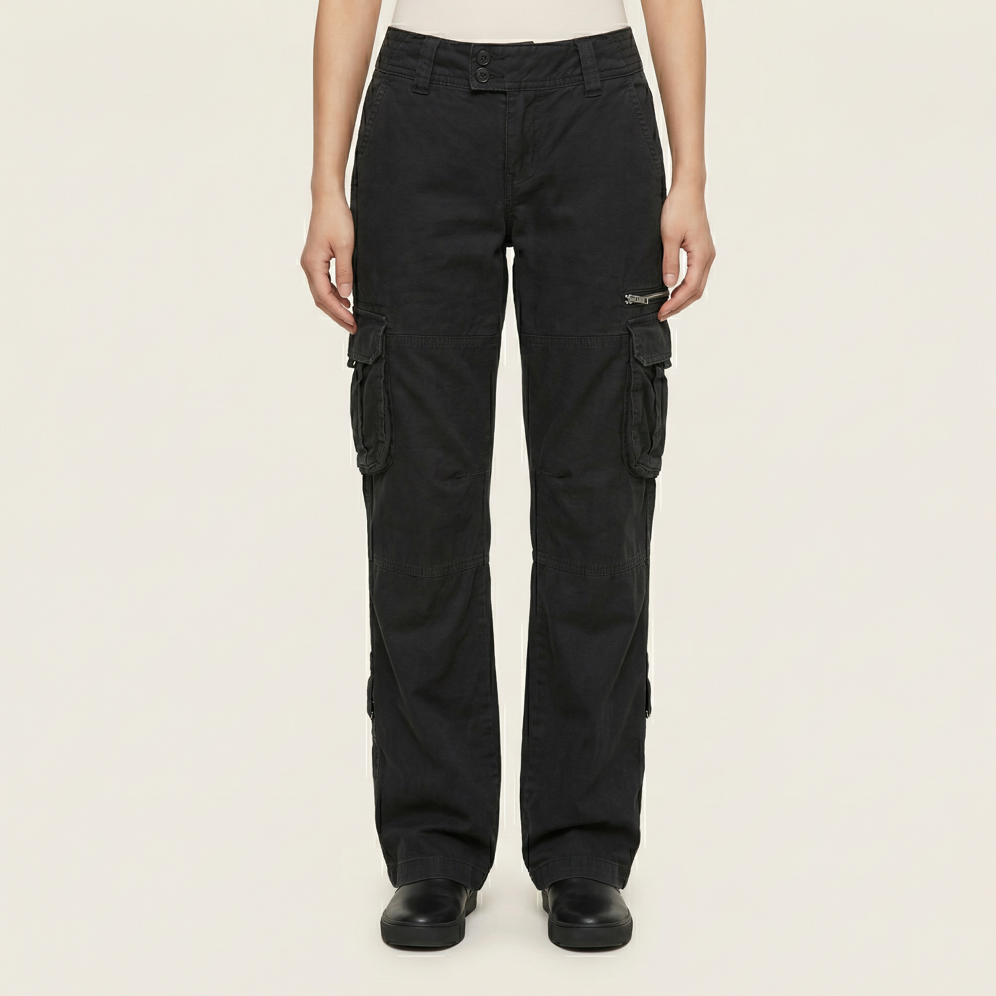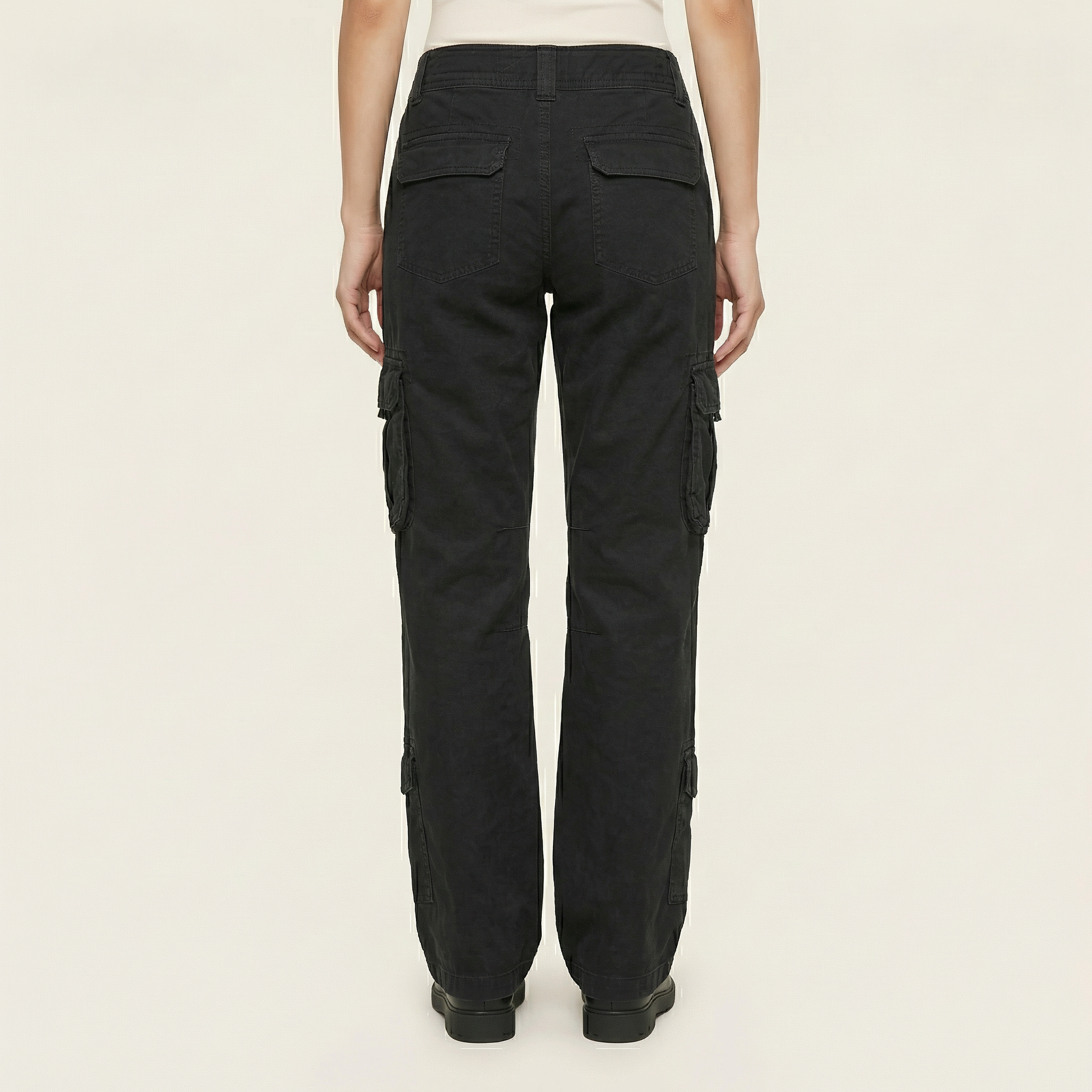 These women’s cargo pants feature a straight leg design with multiple functional pockets for everyday wear. The structured silhouette offers a practical option for casual styling.