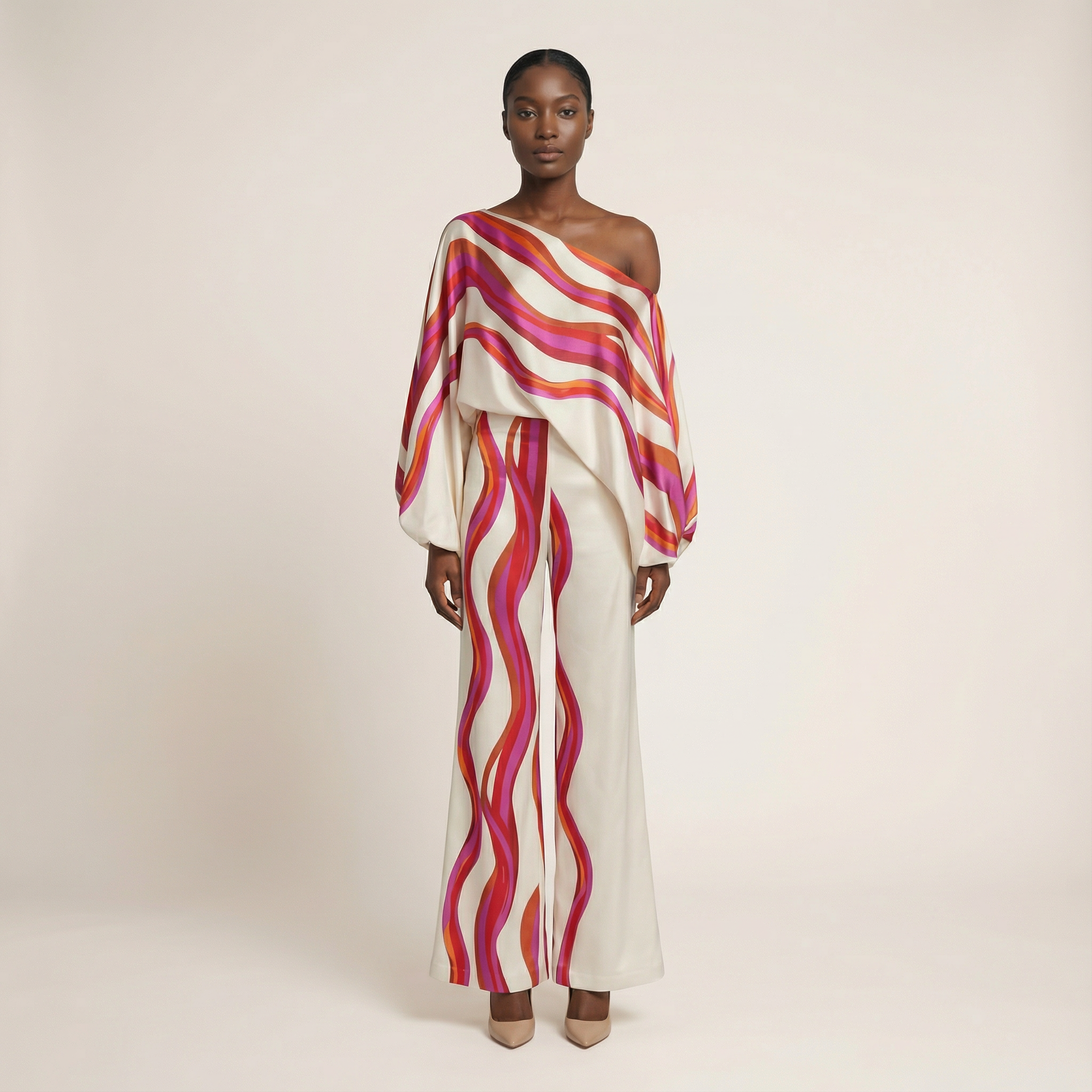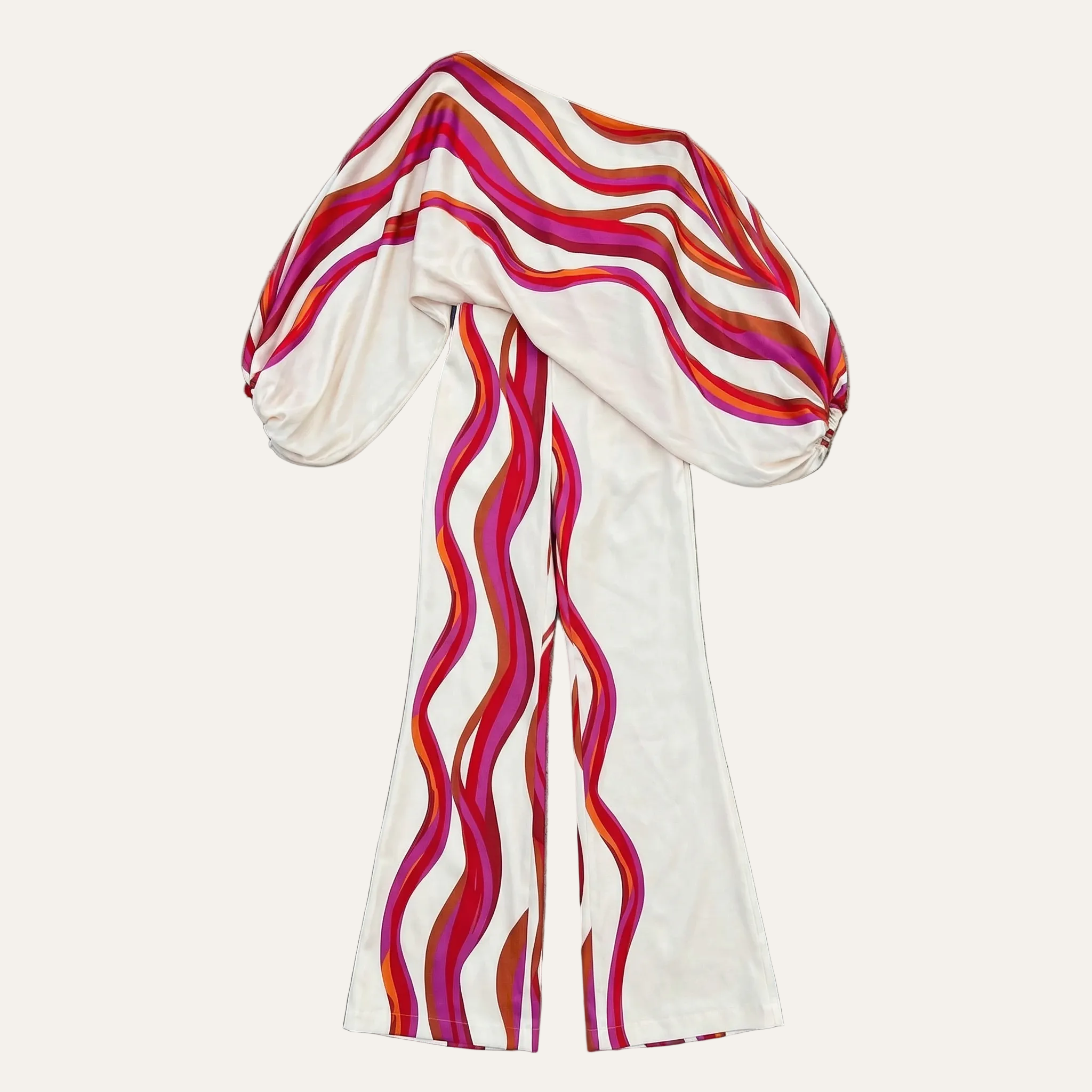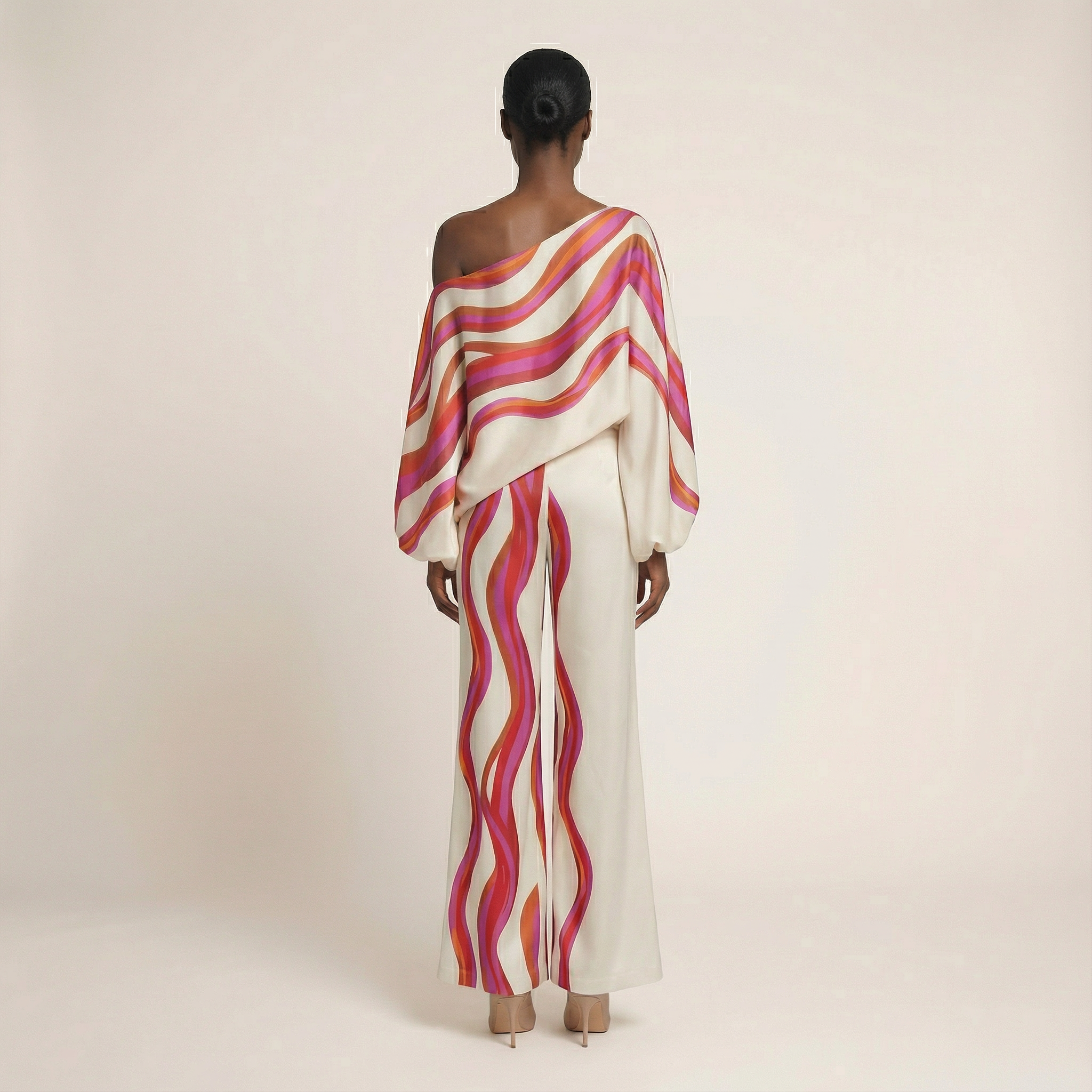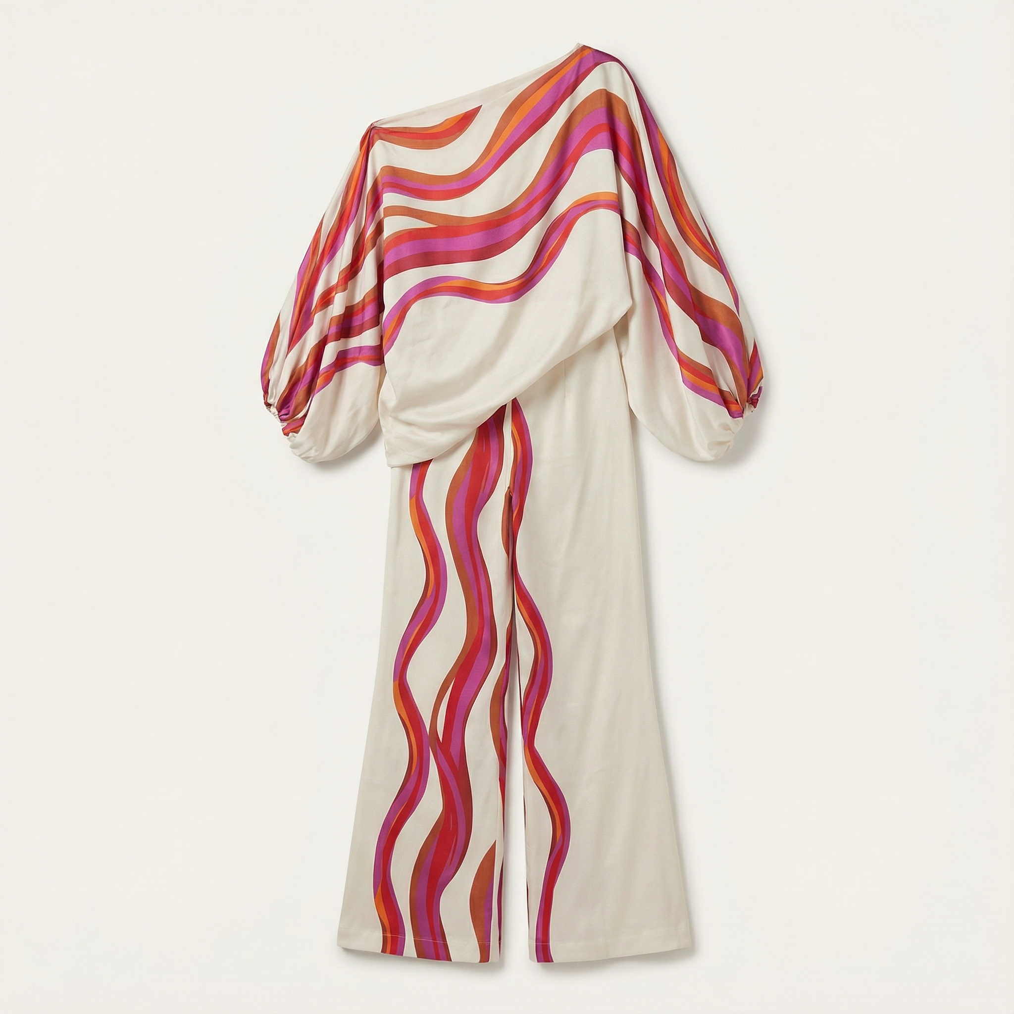 Women’s One-Piece Jumpsuit – One-Shoulder Design, Printed Pattern