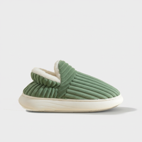 Women’s closed-toe indoor slippers with full lining and a slip-on design for indoor use.